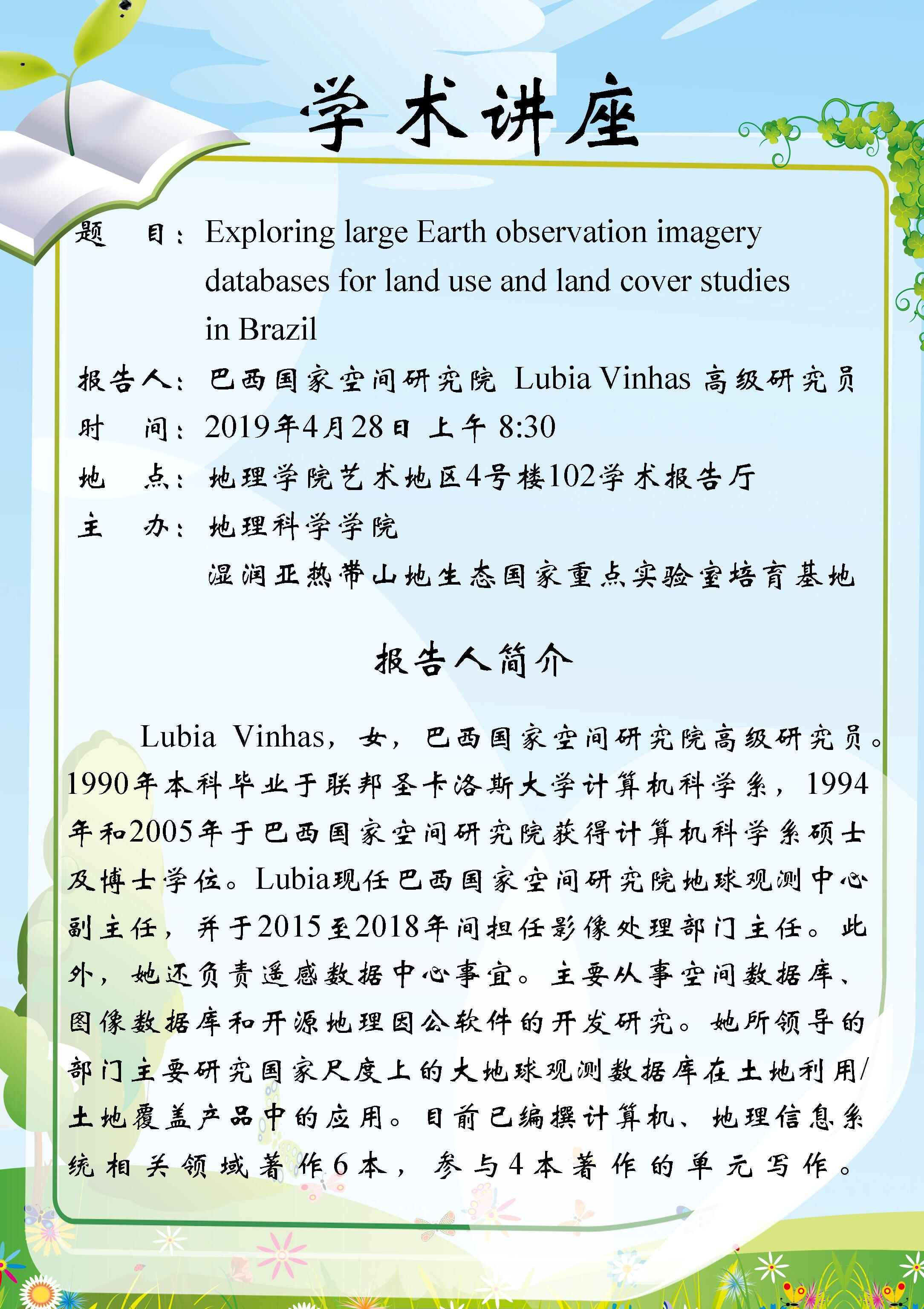 2019年4月28日上午“Exploring large Earth observation imagery databases for land use and land cover studies in Brazil”学术讲座