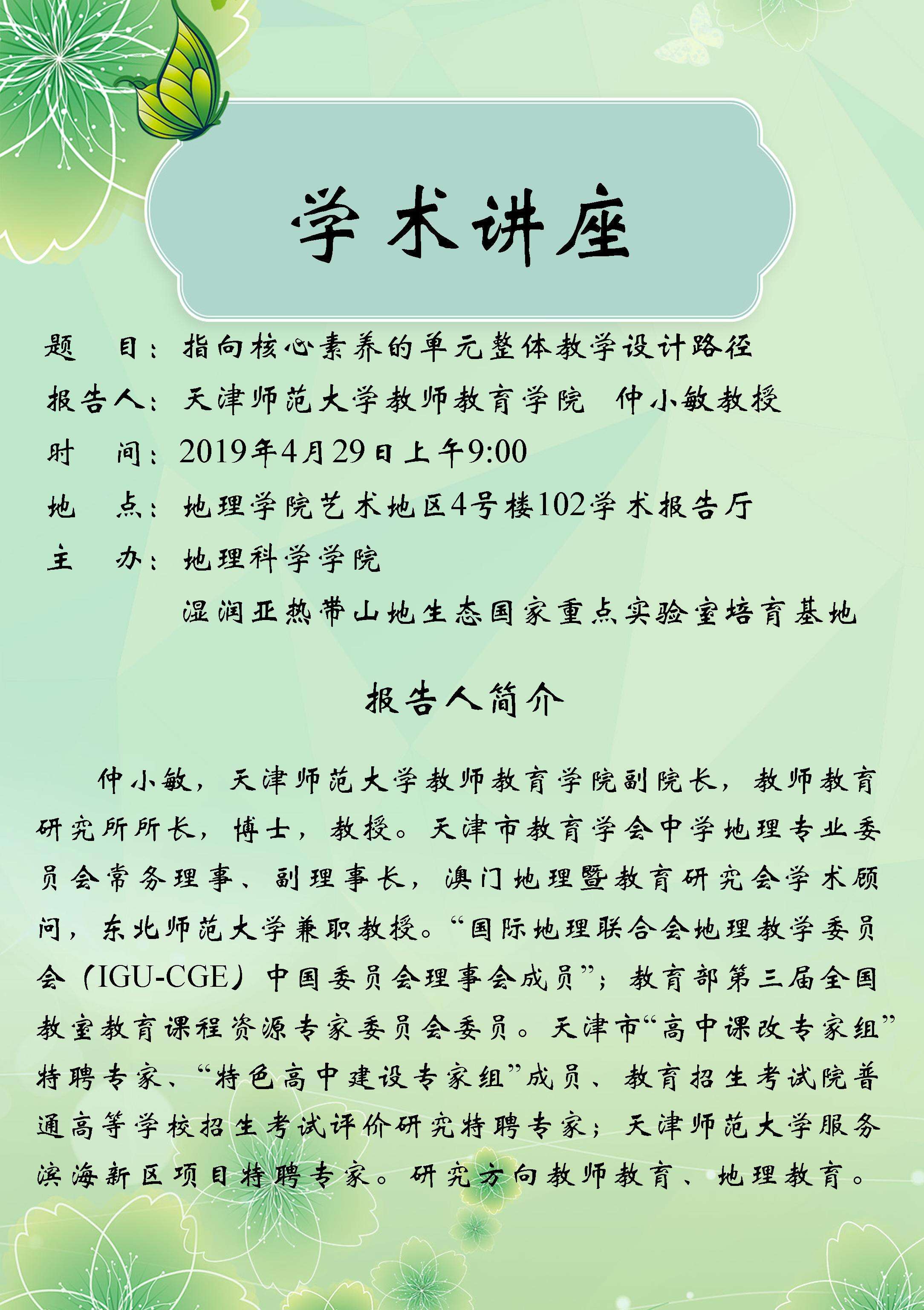 2019年4月29日“指向核心素养的单元整体教学设计路径”学术讲座