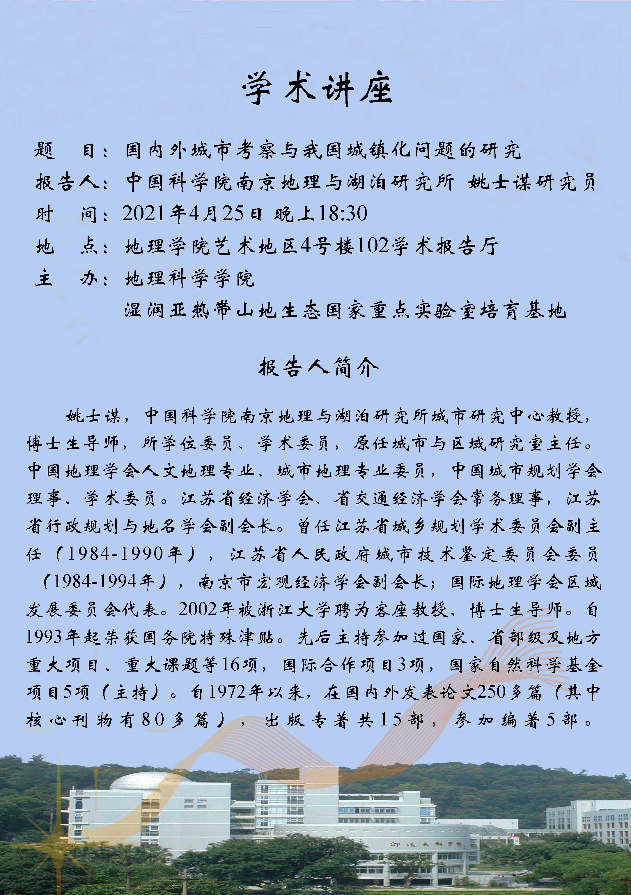 2021年4月25日“国内外城市考察与我国城镇化问题的研究”学术讲座