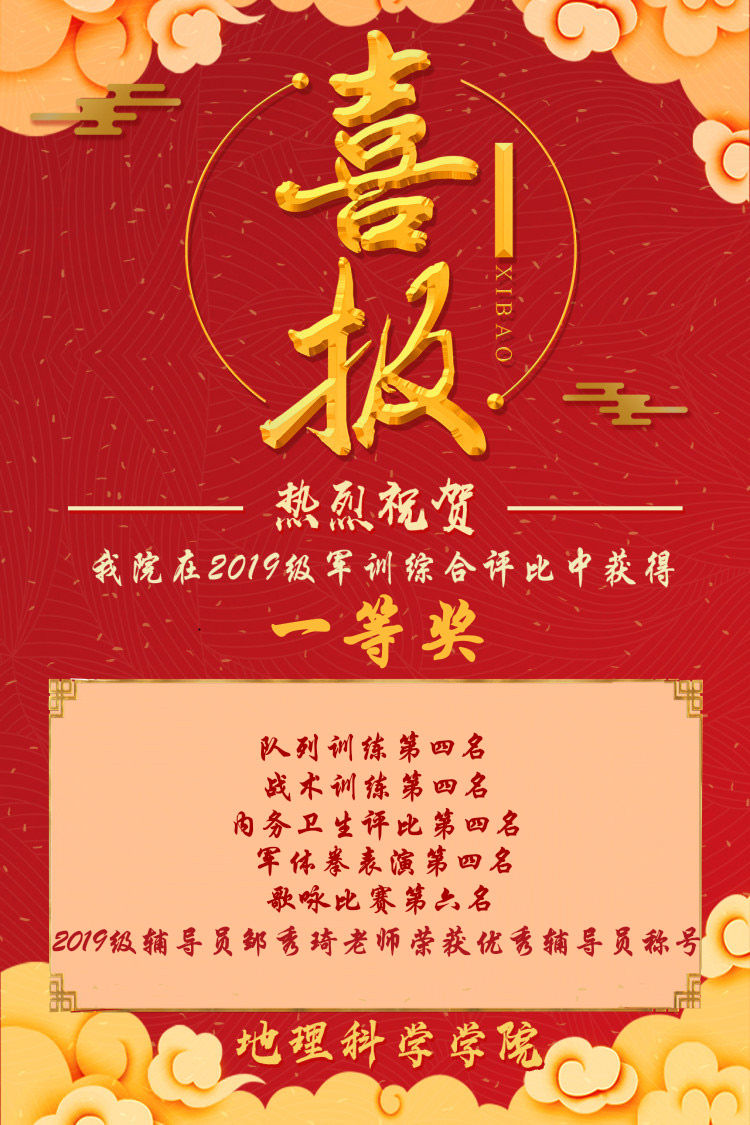 “少年尚意气,峥嵘各自担”军训沙场淬炼,尔等挥洒青春热血;赤轮炎炎炙烤,学子锻造刚毅军魂。我院2019级本科生在军训期间展现了我院特有的魅力与风采,彰显了新一代地科学子昂扬向上的精神风貌。在祖国峥嵘七十周年生日到来之际,同学们以刚强的军人体魄和热血的青春为祖国送上祝福。今后,2019级新生定将军训的高标准、严要求延续到大学四年的点点滴滴,在学习中,不断钻研,勇于攀登,不负四年青春韶华,不忘爱国初心!