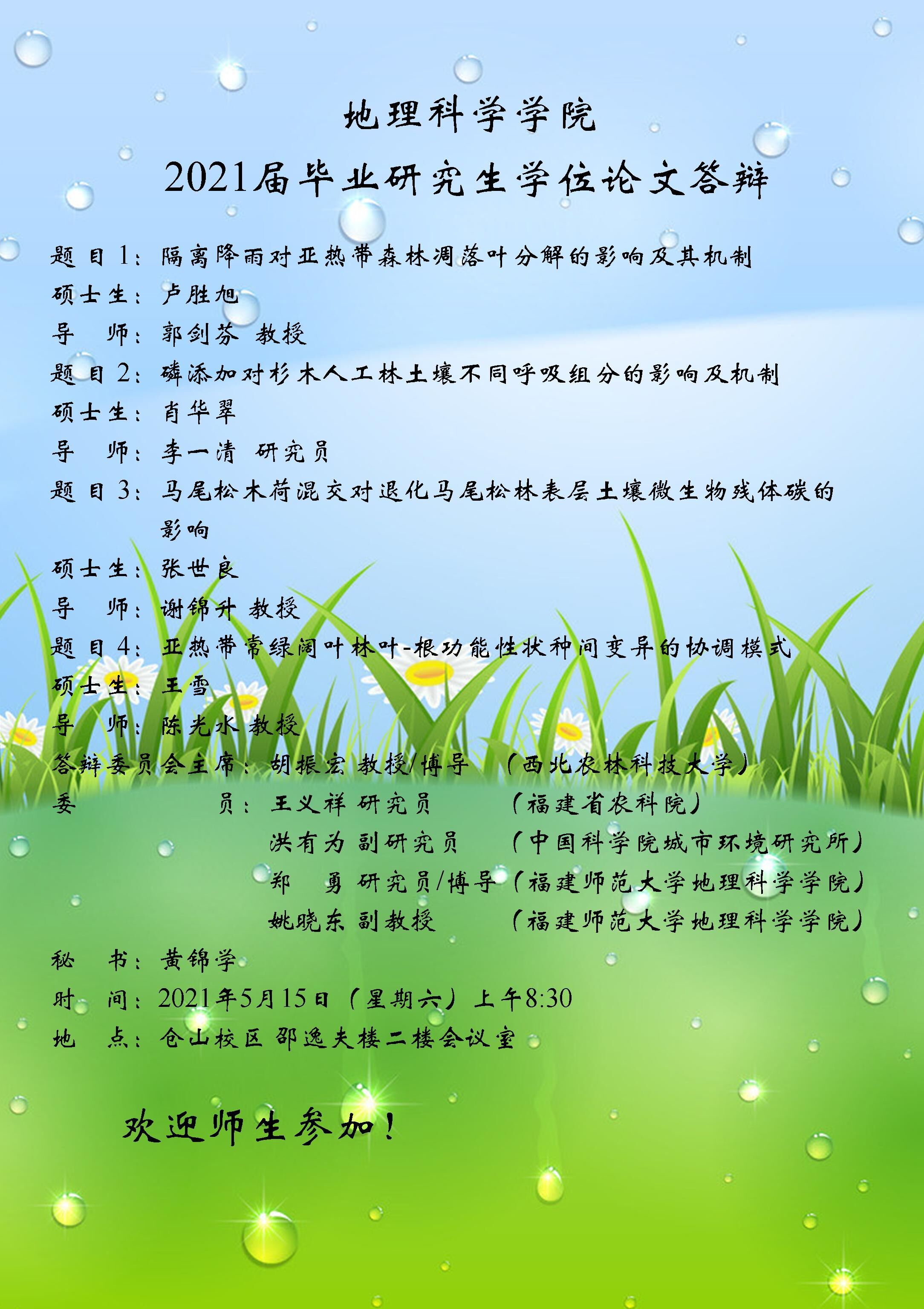 2021年5月15日“地理科学学院2021届毕业研究生学位论文答辩”