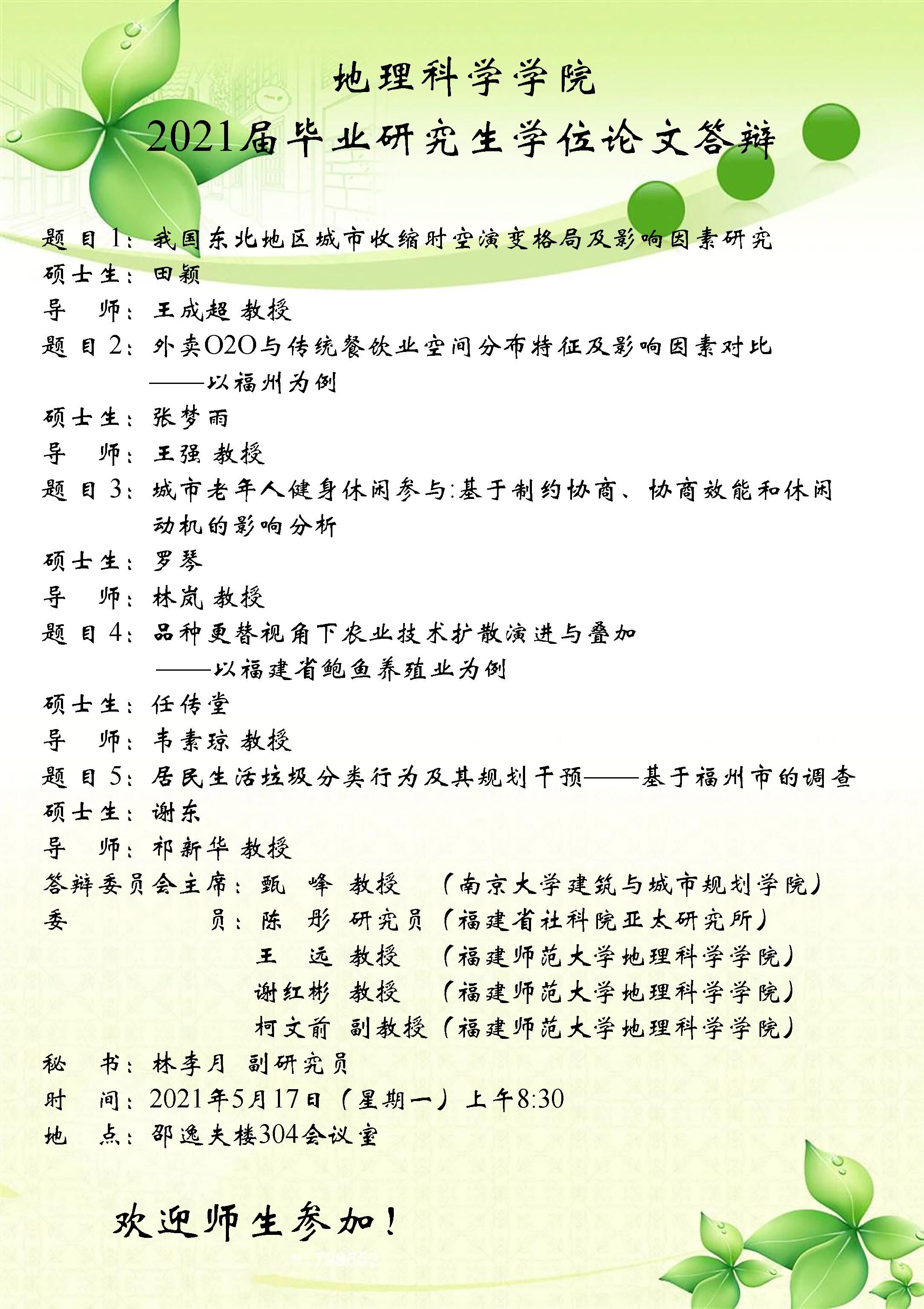2021年5月17日“地理科学学院2021届毕业研究生学位论文答辩”