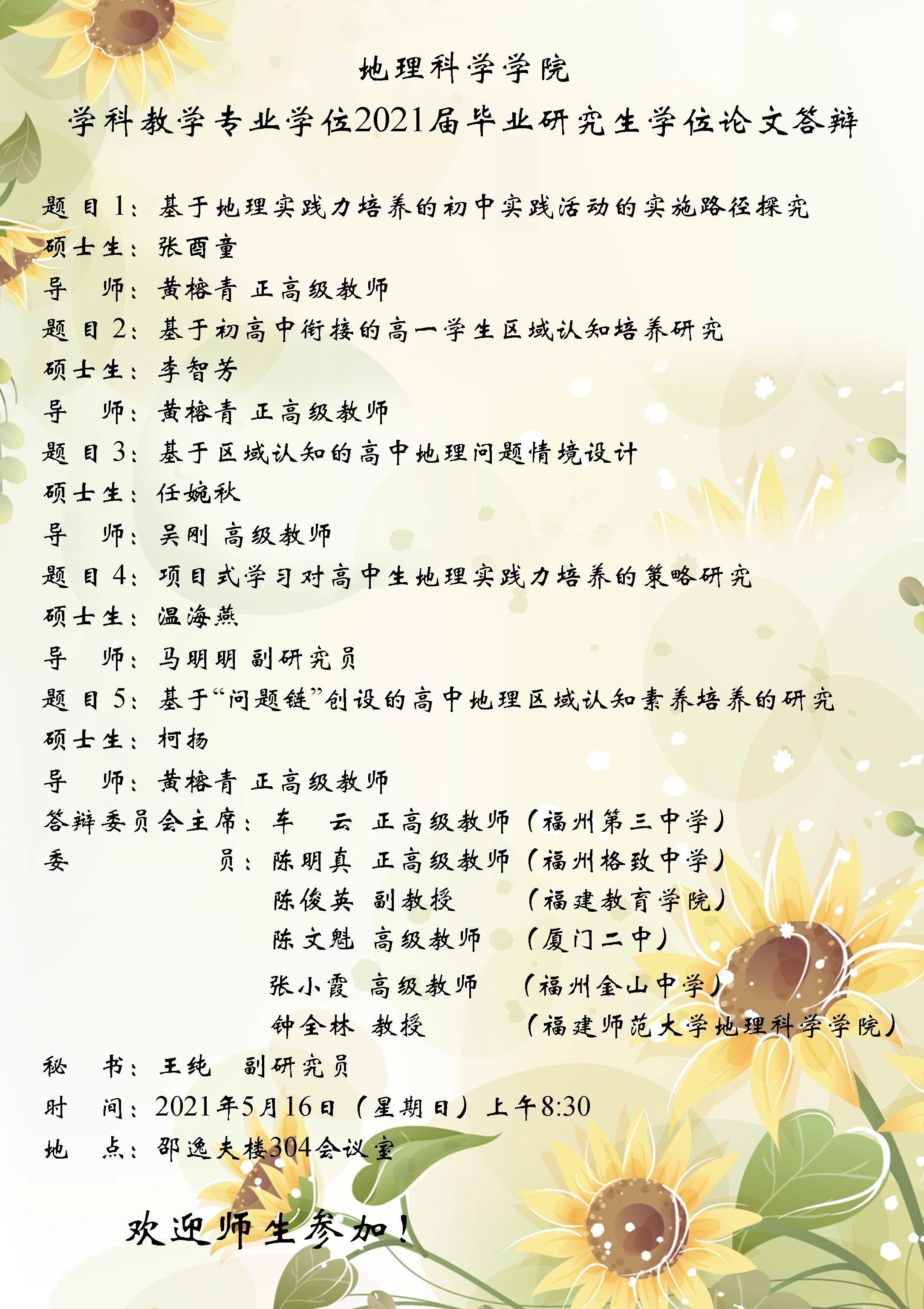 2021年5月16日“地理科学学院学科教学专业学位2021届毕业研究生学位论文答辩”