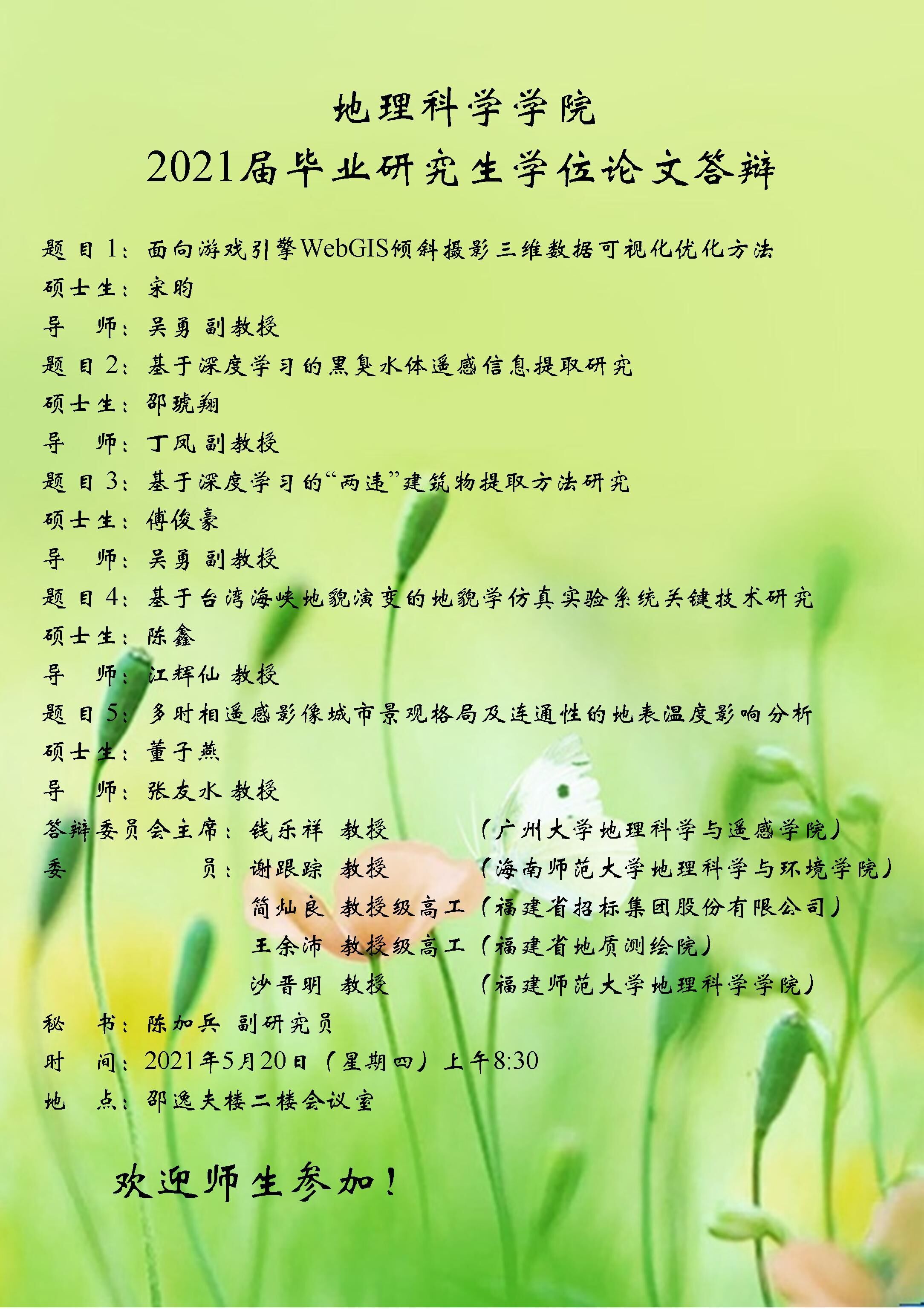 2021年5月20日“地理科学学院2021届毕业研究生学位论文答辩”