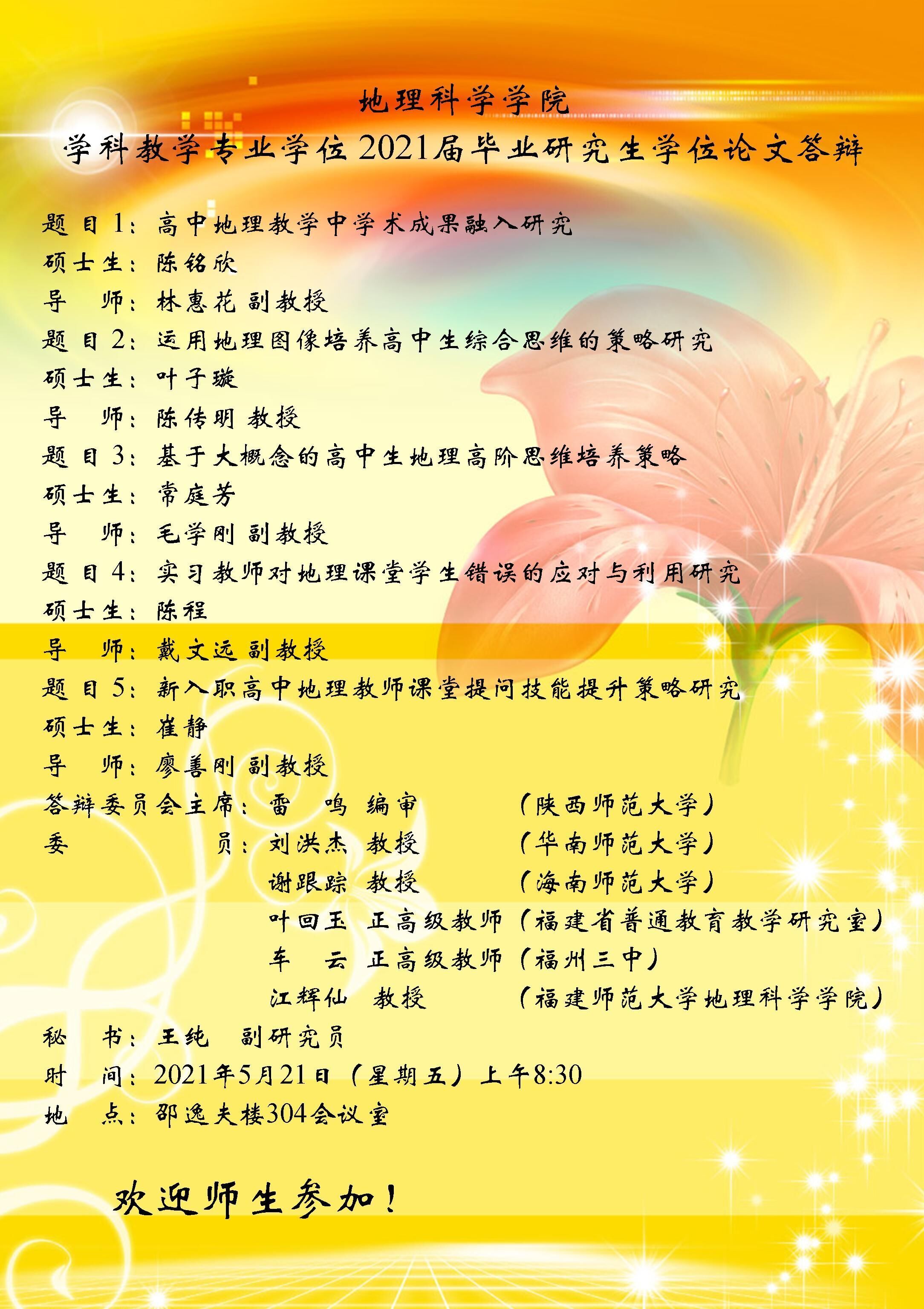 2021年5月21日“地理科学学院学科教学专业学位2021届毕业研究生学位论文答辩”
