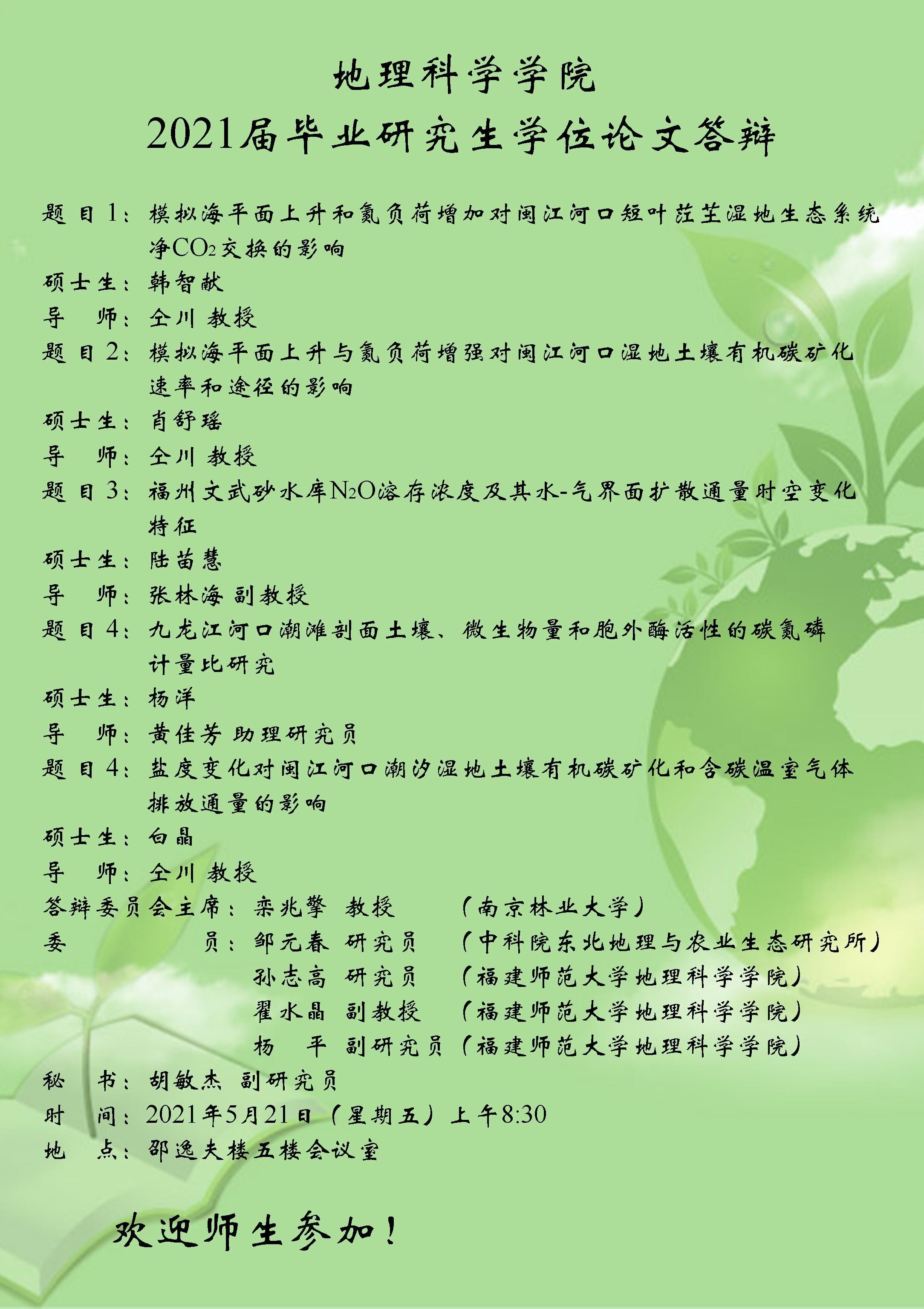 2021年5月21日“地理科学学院2021届毕业研究生学位论文答辩”