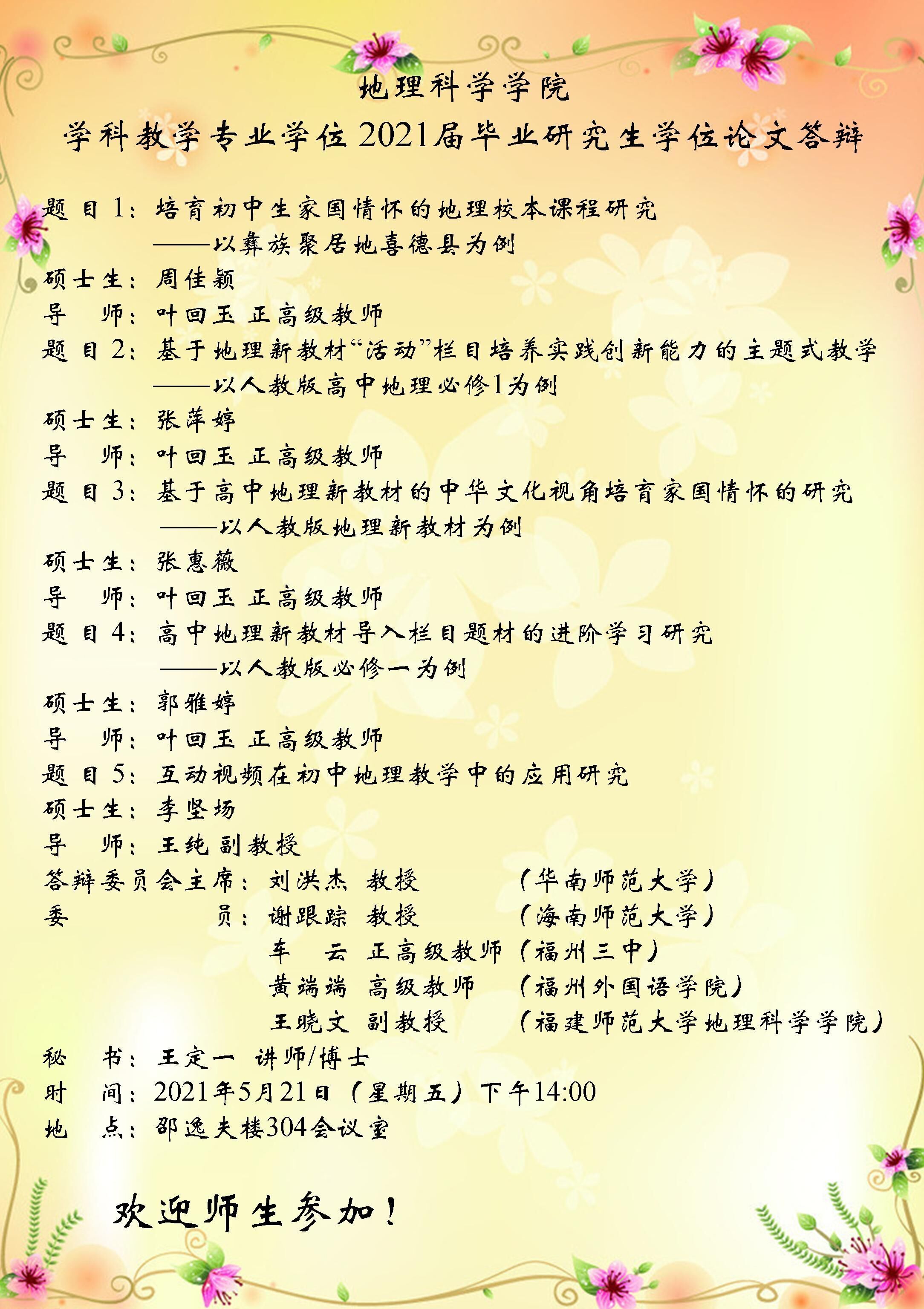 2021年5月21日“地理科学学院学科教学专业学位2021届毕业研究生学位论文答辩”