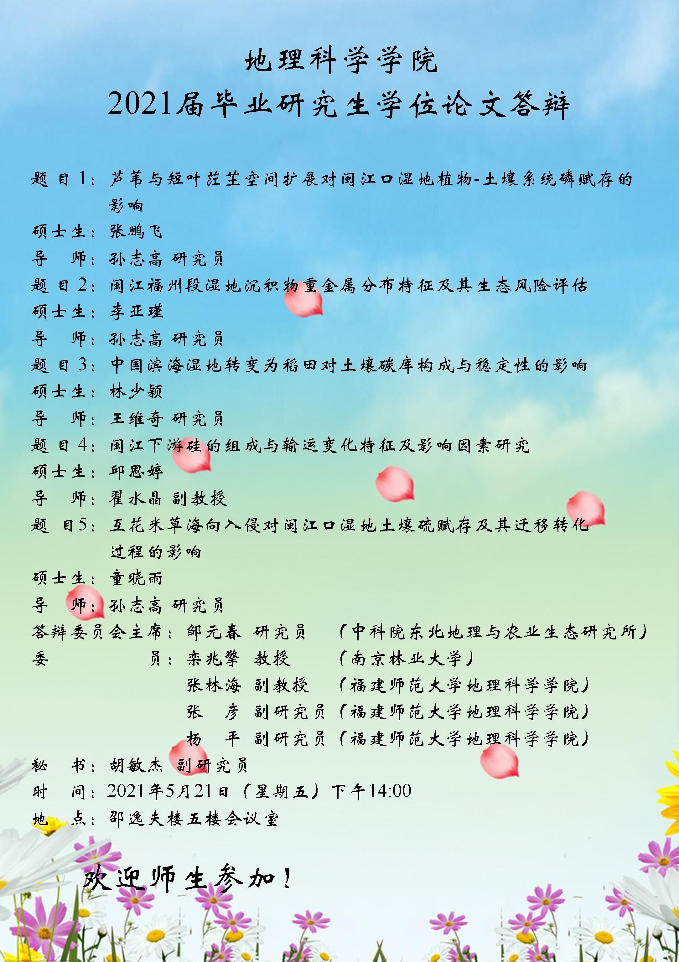 2021年5月21日“地理科学学院学科教学专业学位2021届毕业研究生学位论文答辩”