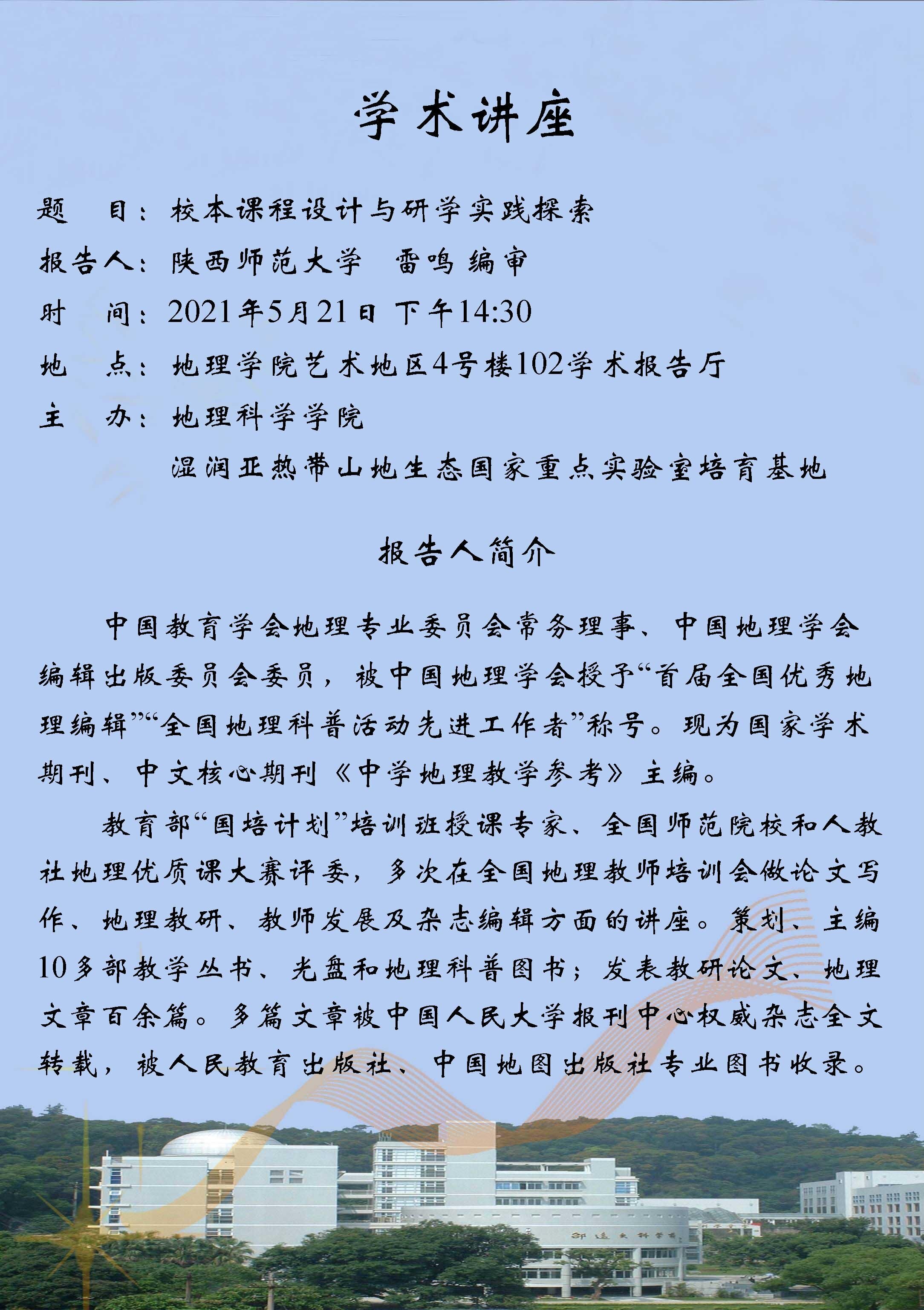 2021年5月21日“校本课程设计与研学实践探索”学术讲座