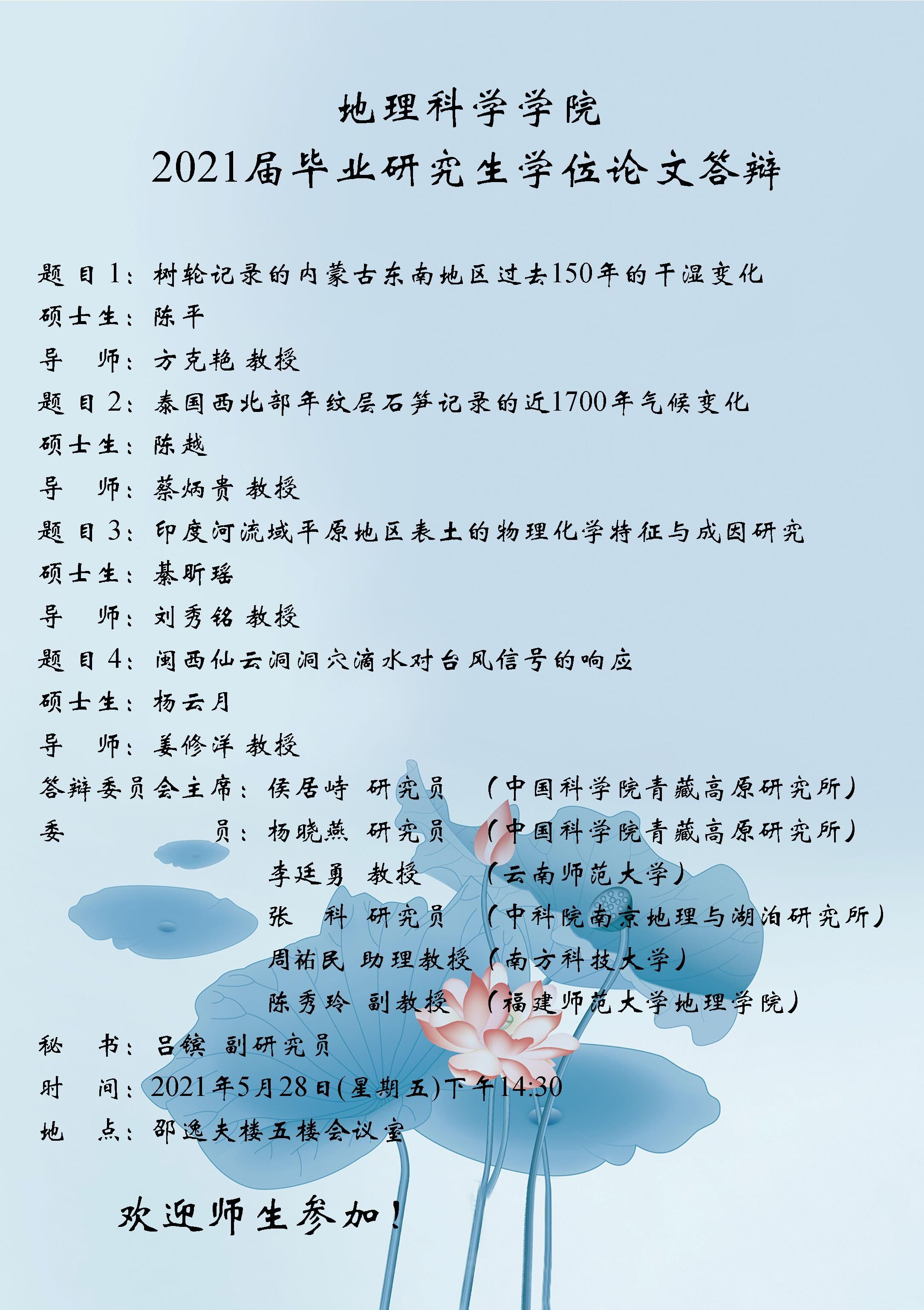 2021年5月28日“地理科学学院2021届毕业研究生学位论文答辩”