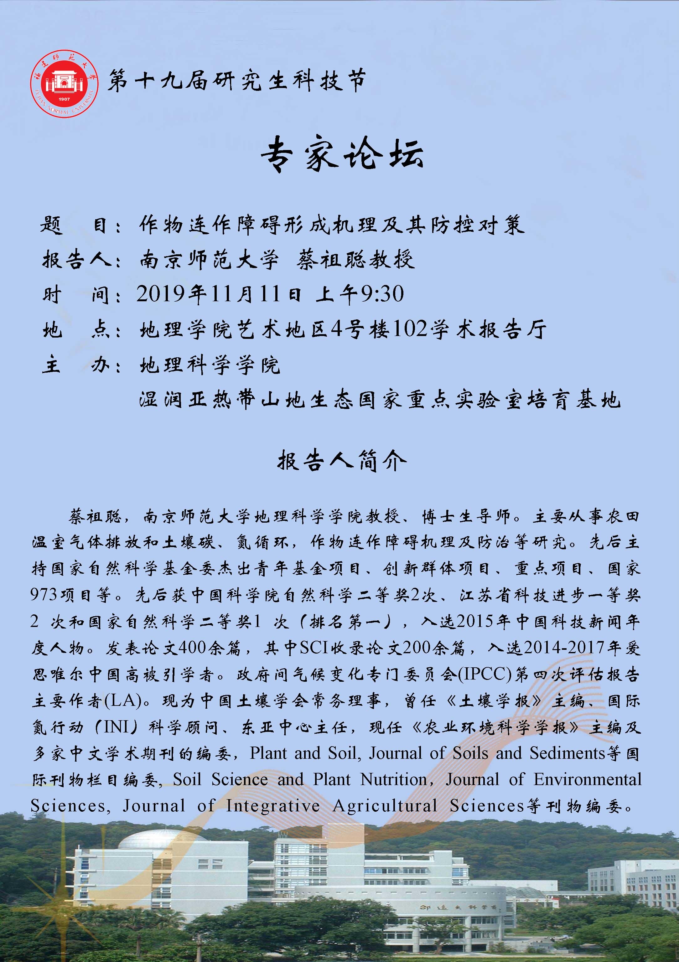 2019年11月11日“作物连作障碍形成机理及其防控对策”学术讲座