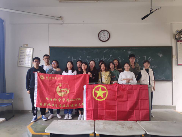 2019年11月23日上午,我院2018级自然地理与资源环境团支部在知名1-301开展以学习党的十九届四中全会精神为主题的团日活动。