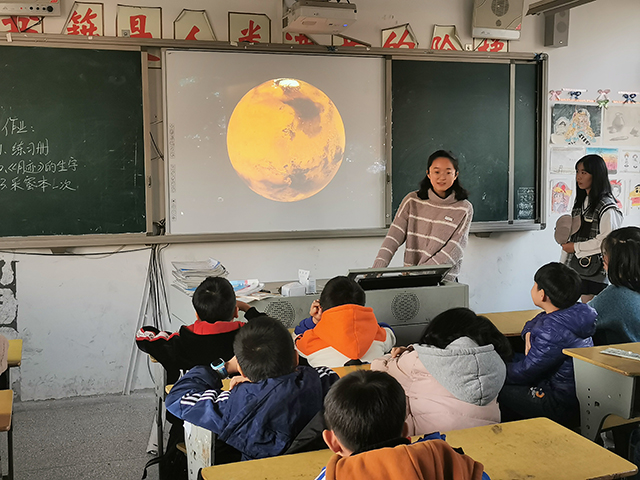 活动伊始,团支部成员分成两组分别为建平小学四年级二班和五年级二班上课。科普课中,团支部成员围绕“太阳系及近地宇宙环境”展开教学,并向同学们介绍了近日出现的奇妙的天文现象——四星连珠。随后,团支部成员引导同学们共同探索黑洞,同时提出相关问题引发同学们的思考,同学们对此感到兴味盎然,并纷纷举手发言,课堂气氛十分活跃。此外,团支部成员通过精彩的视频和有趣的游戏使授课过程变得轻松有趣,也加深了同学们对本节知识的理解。而后,支部成员进行课堂总结并向同学们赠送了糖果等奖品。授课结束后,同学们表示在本节地理知识科普课中学到了许多课堂之外的新知识,也对天文地理有了更为浓厚的兴趣。