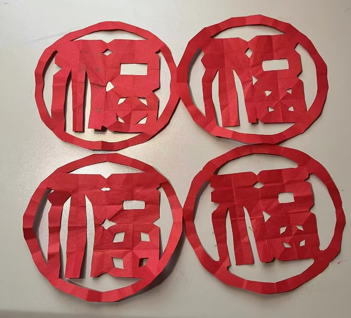 “福”文化源远流长,表现形式也丰富多彩。过年时,家家户户的门楼上贴满了“福星高照”;祝寿时,人们道上一声“福如东海”;称赞他人时,大家会说“双修福慧”......可以说,“福”是一种寄托,是一种美好的祝愿。实践队成员们结合剪纸传统手工,“剪“福”字、贴“福”字、祈“福”运,传递美好祝福。