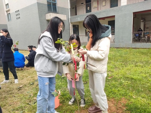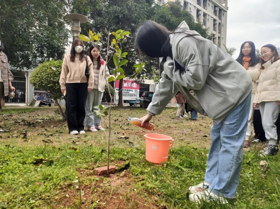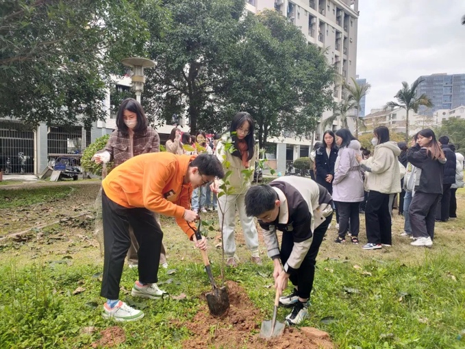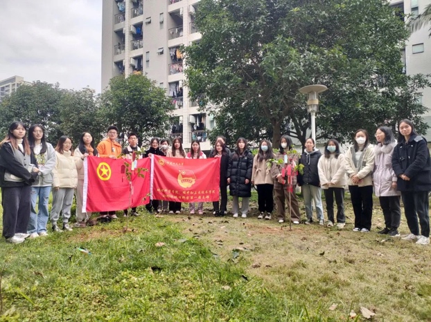 地理科学学院、碳中和未来技术学院2020级地理科学第一团支部联合马克思主义学院2020级思想政治教育第二团支部,于桃苑五号宿舍楼后空地开展“国土绿化始于足下,展望未来践行理想”主题校园绿化活动。