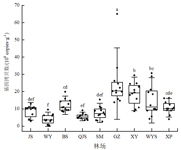 图1 福建省杉木人工林土壤FnirK基因丰度