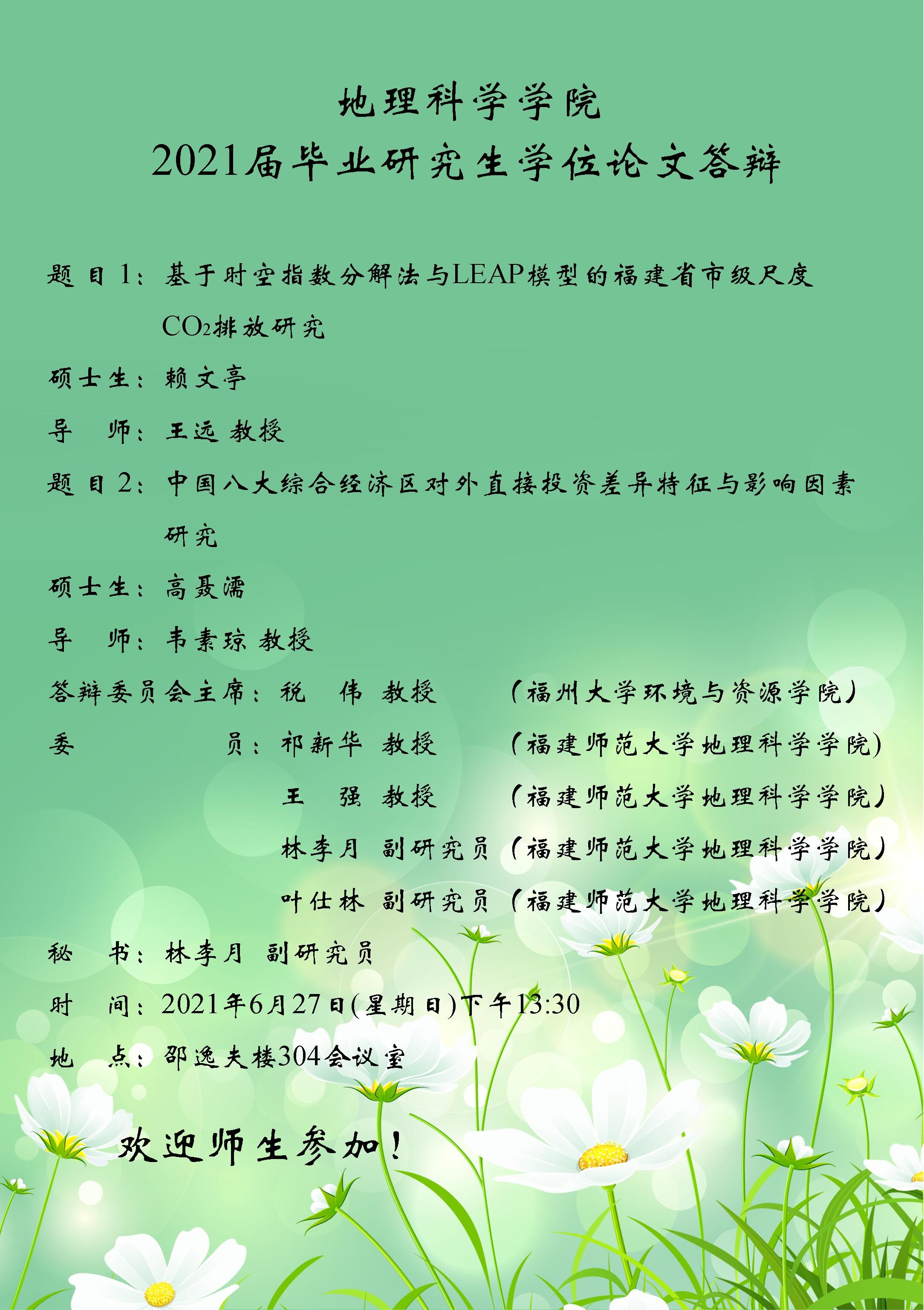 2021年6月27日“地理科学学院2021届毕业研究生学位论文答辩”
