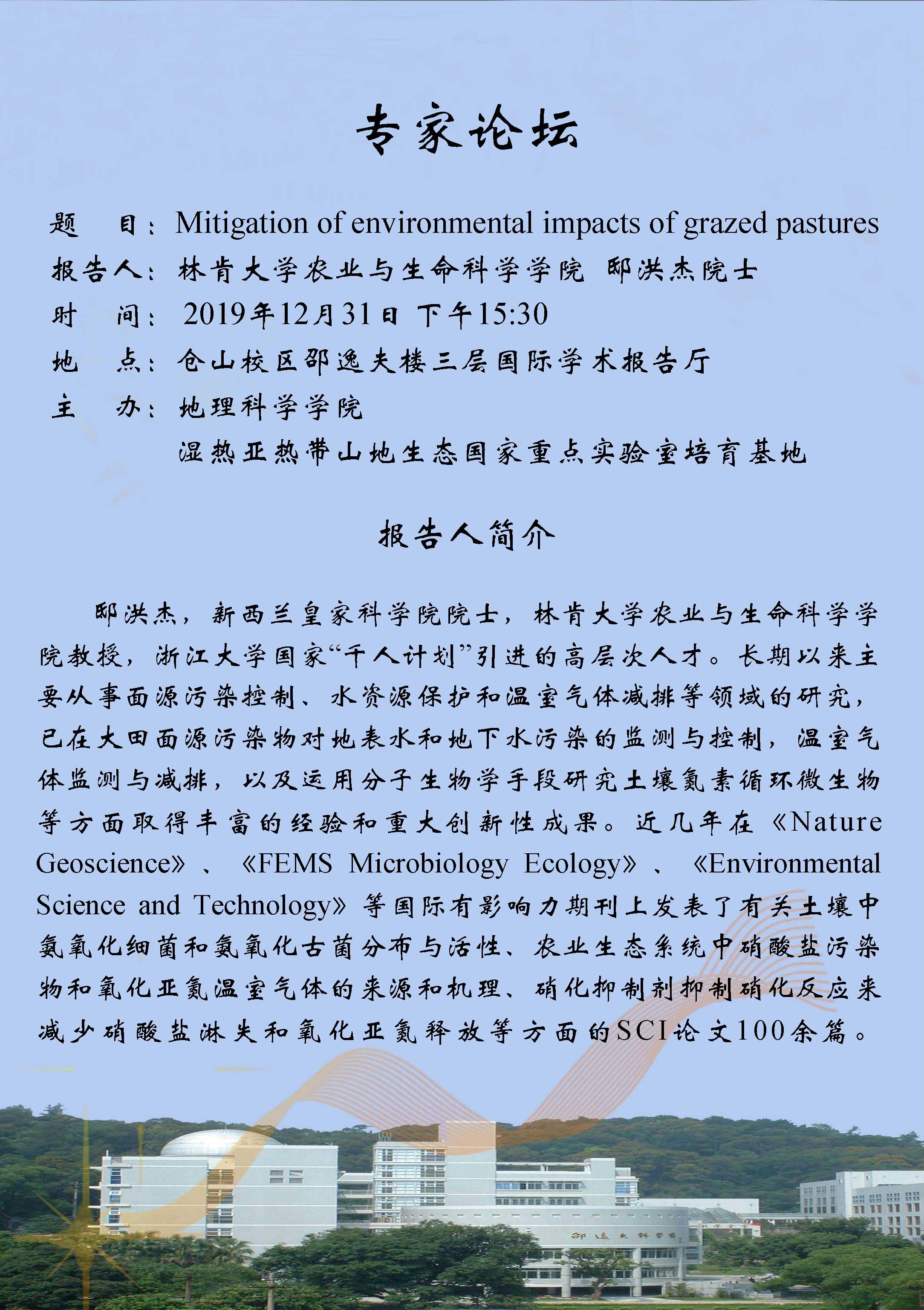 2019年12月31日“Mitigation of environmental impacts of grazed pastures”学术讲座