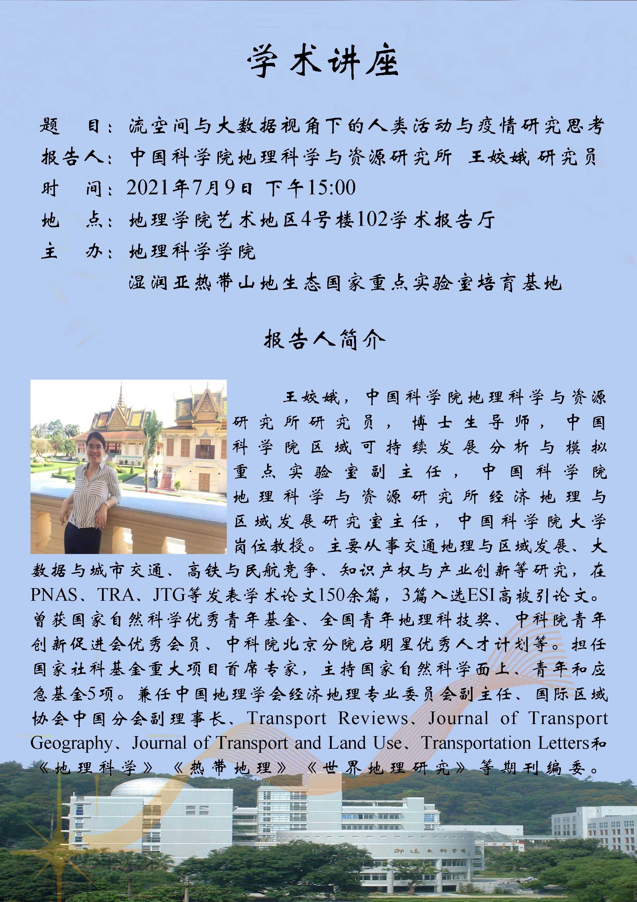 2021年7月9日“流空间与大数据视角下的人类活动与疫情研究思考”学术讲座