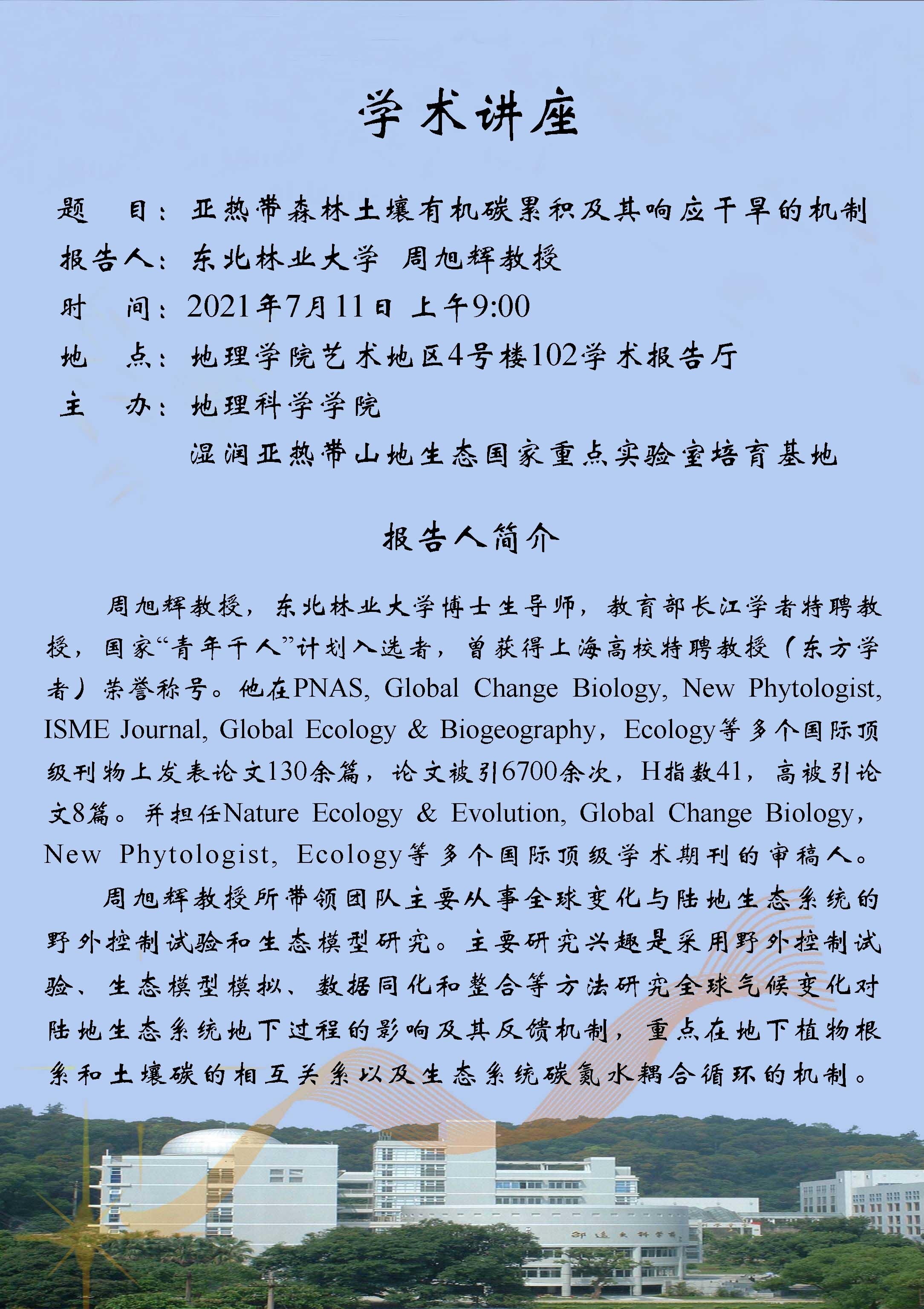 2021年7月11日“亚热带森林土壤有机碳累积及其影响干旱的机制”学术讲座