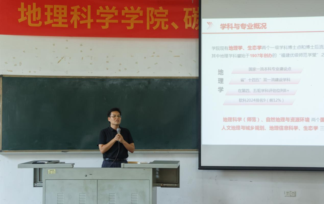 随后,王强教授围绕“学科发展与人才培养”主题展开分享。王强教授结合学院学科优势和当前行业发展趋势,深入解读了地理科学(师范)、地理科学类和生态学等专业的课程体系、实践教学安排、培养目标等。他指出,学院不仅注重学生专业知识的传授,更通过科研项目参与、野外实习实践等方式,努力培养学生的创新能力与社会责任感。