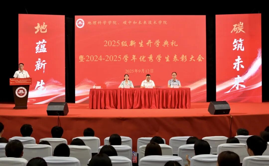 9月12日上午,“‘地’蕴新生,‘碳’筑未来”——地理科学学院、碳中和未来技术学院2025级新生开学典礼暨2024-2025学年优秀学生表彰大会于旗山图书馆大会堂隆重举行。院党政领导班子成员、院关工委、各学位点负责人、专业负责人、系主任、科室负责人、全体辅导员、全体2025级新生及师生代表共计700多人参加。典礼由院党委副书记林伟主持。