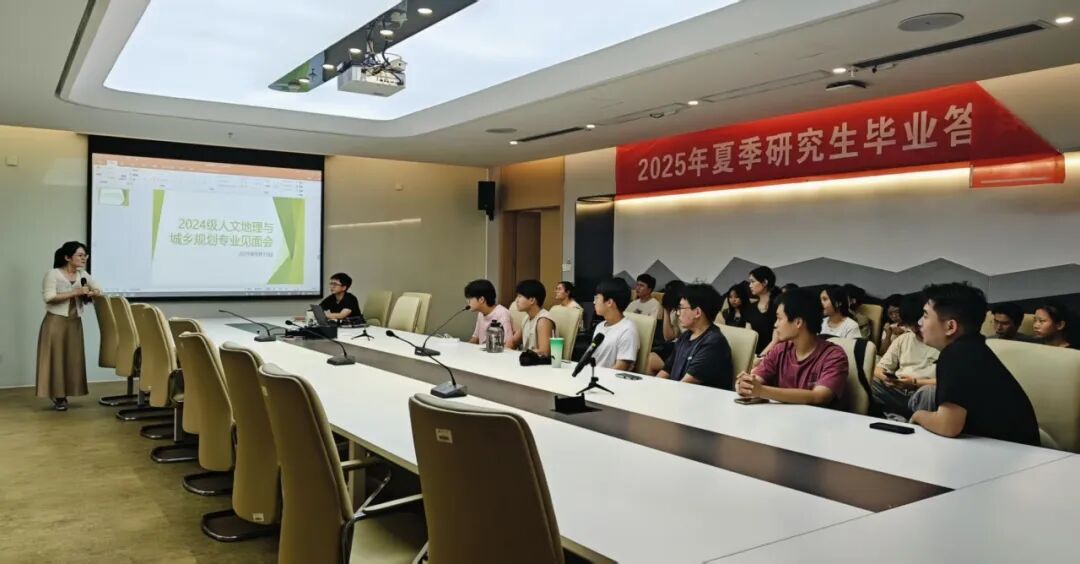 近日,2024级人文地理与城乡规划专业师生见面会暨第一次班会在科技楼16号楼813会议室举行。此次会议由专业负责人祁新华、系主任叶士琳、副主任张晨、系秘书陈静、班主任游小珺、辅导员郑新杰共同出席,聚焦于地理科学类专业分流后同学们的需求,开展答疑解惑工作,并同步提供专业指导和未来规划参考。
