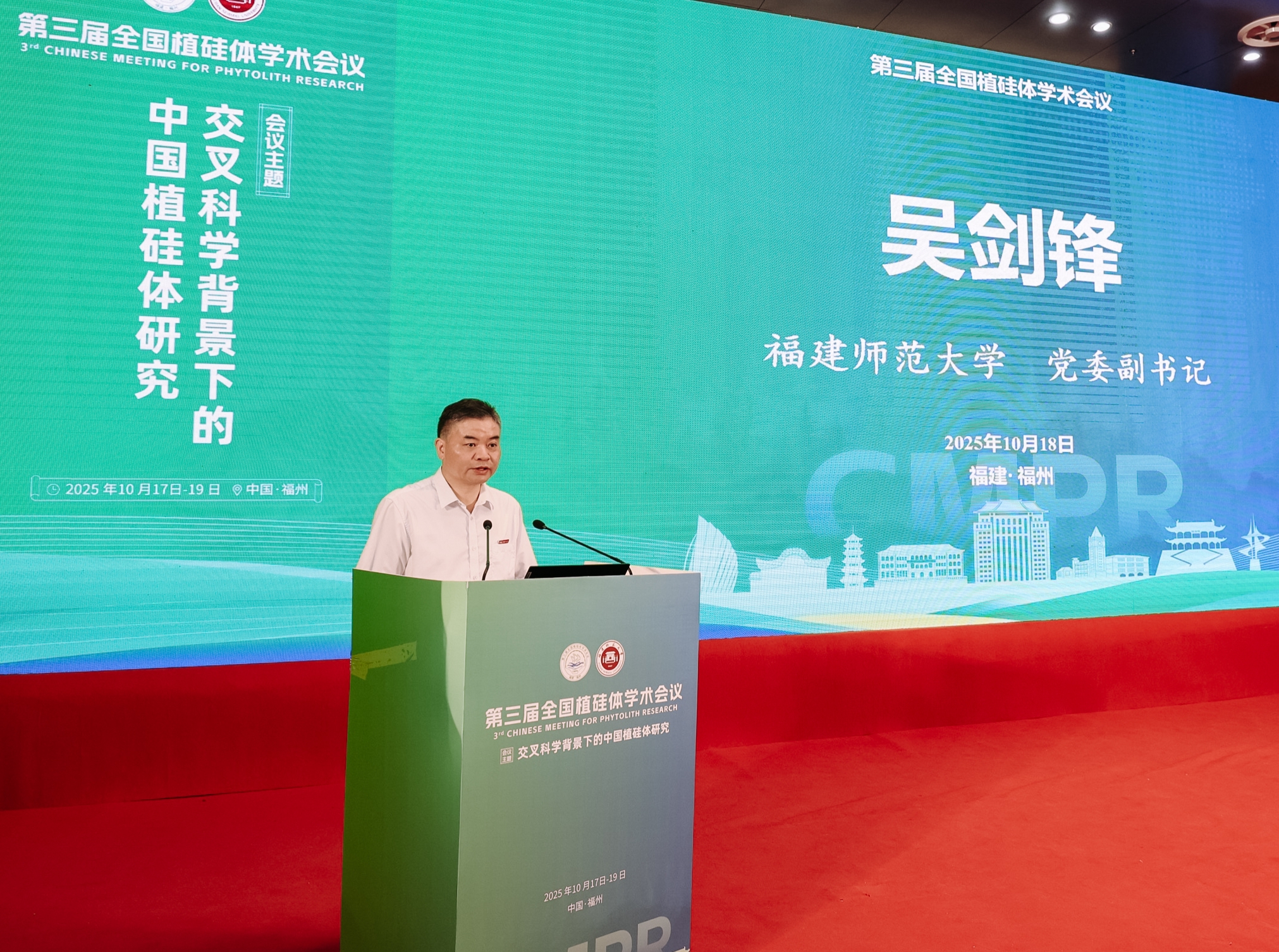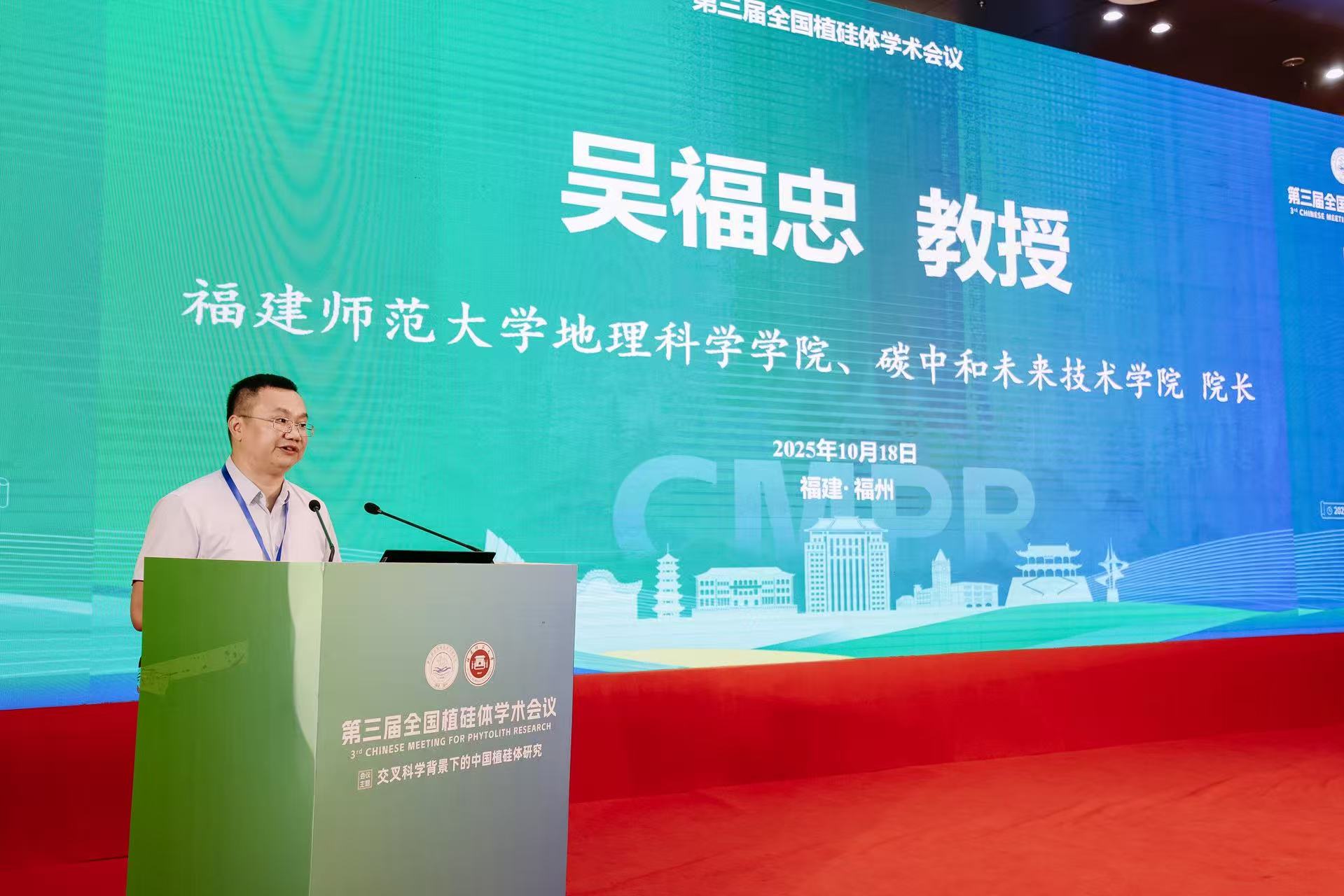 10月18日至19日,由中国古生物学会孢粉学分会、中国考古学会环境考古专业委员会、中国考古学会植物考古专业委员会、中国地理学会微体与古环境研究工作组以及中国第四纪科学研究会人类演化与环境考古专业委员会联合主办,我校地理科学学院、碳中和未来技术学院和中国地质科学院水文地质环境地质研究所联合承办的第三届全国植硅体学术会议在福州召开。我校党委副书记吴剑锋,中国考古学会环境考古专业委员会副主任、中国科学院地质与地球物理研究所吕厚远研究员,著名植物考古学家、山东大学文化遗产研究院赵志军教授,中国科学院古脊椎动物与古人类研究所李小强研究员,中国地质大学(武汉)顾延生教授,东北师范大学介冬梅教授,浙江省文物考古研究所郑云飞研究员,自然资源部第一海洋研究所冉祥滨研究员,中国地质科学院水文地质环境地质研究所副所长刘林敬正高级工程师,我院党委书记林翠容、院长吴福忠、副院长蔡炳贵和来自全国各大高校、科研院所、企事业单位等150余人参会,开幕式由院长吴福忠教授主持,吴剑锋、吕厚远、刘林敬分别致开幕辞。