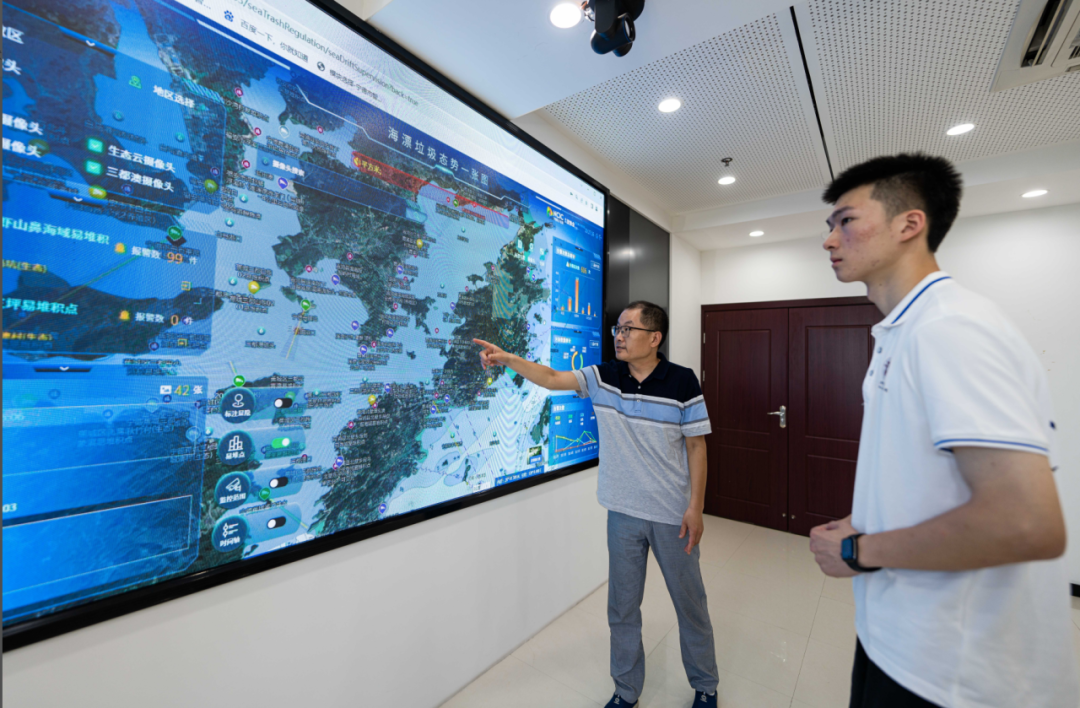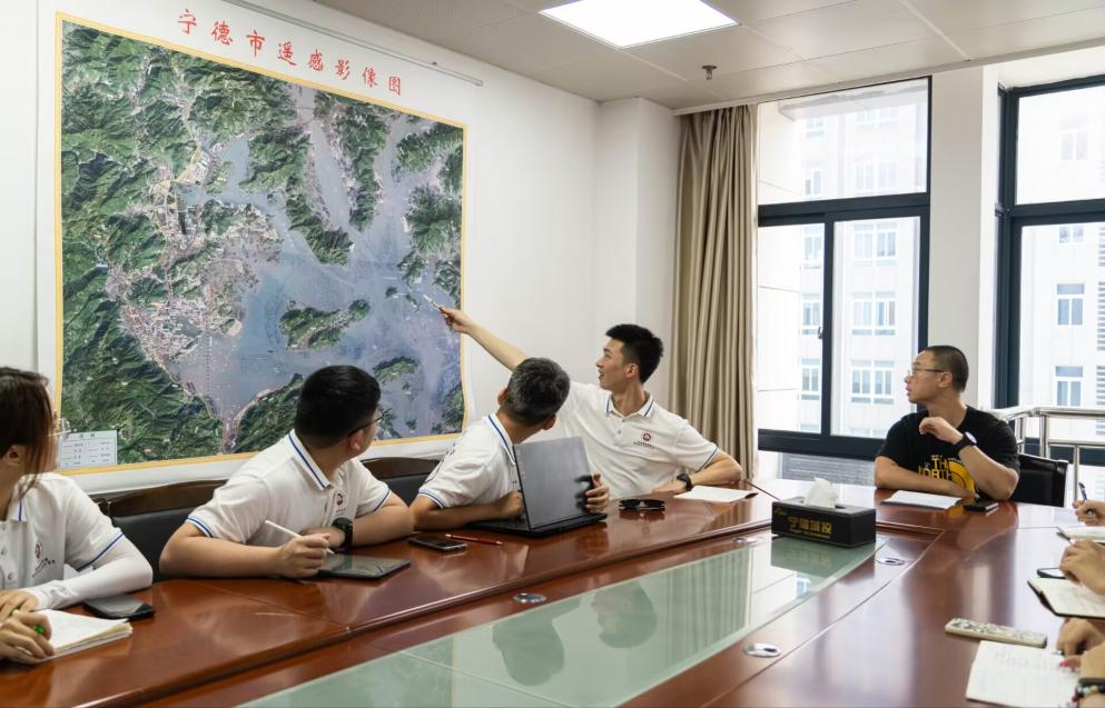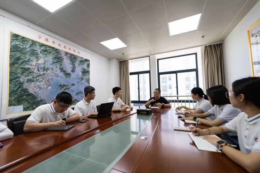 实践队成员与海洋与渔业局工作人员围绕海洋养殖产业与海洋生态环境等开展深入探讨与交流,宁德市海洋与渔业局局长肖剑华为实践队成员介绍了宁德市三都澳湾区海漂垃圾智慧打捞工作方案及工作计划。随后,实践队成员通过学习宁德市智慧海洋管理云平台的工作原理,了解宁德市海漂垃圾整治方案与工作成果。