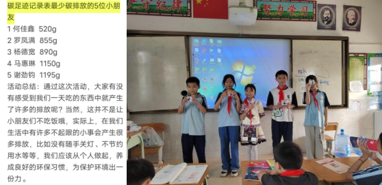 支部成员通过线上教学科普“双碳”,并课后开展“我的‘碳足迹’”实践活动,发放碳足迹记录表,让学生记录自己一天的碳排放量,活动持续时间为一周,共收回了350多份记录表,有力促进了学生环保习惯的养成。