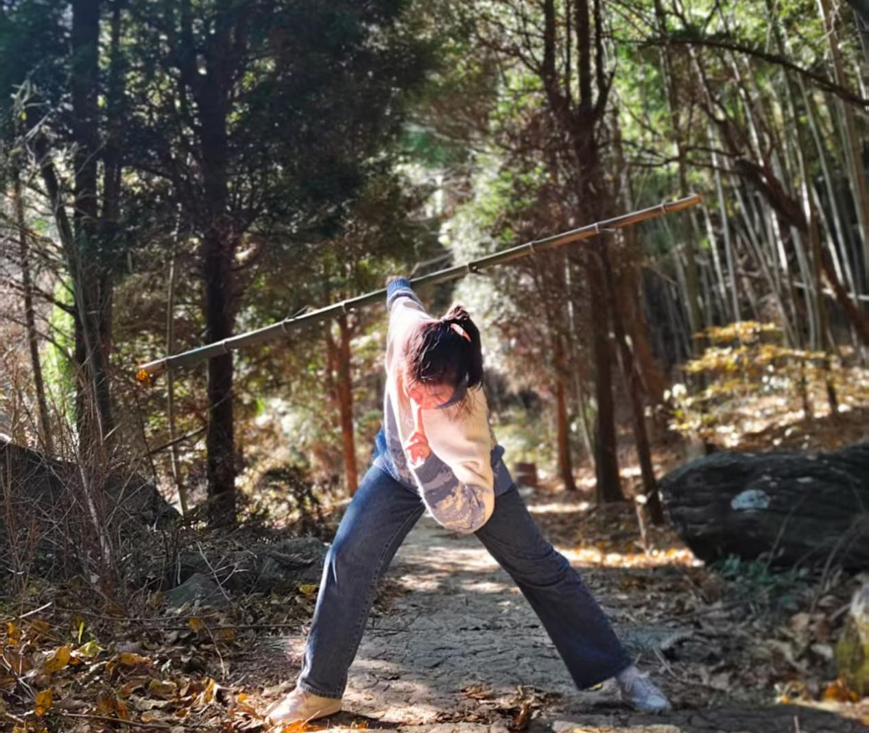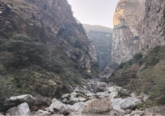 抵达三叠泉后,同学们结合讲解与现场观察,印证河流袭夺的完整过程:被夺河(七里冲)、袭夺河(三叠泉溪流)、断头河的地貌特征清晰可见,青莲寺谷地因地形抬升快、坡度大,河流下蚀作用强烈,形成深达100-200米的陡峭河谷。大家在入口处的桥梁附近寻找测量点位,虽地层褶皱复杂增加了实操难度,但通过小组协作与老师现场指导,逐步掌握了复杂地形下的观测技巧。