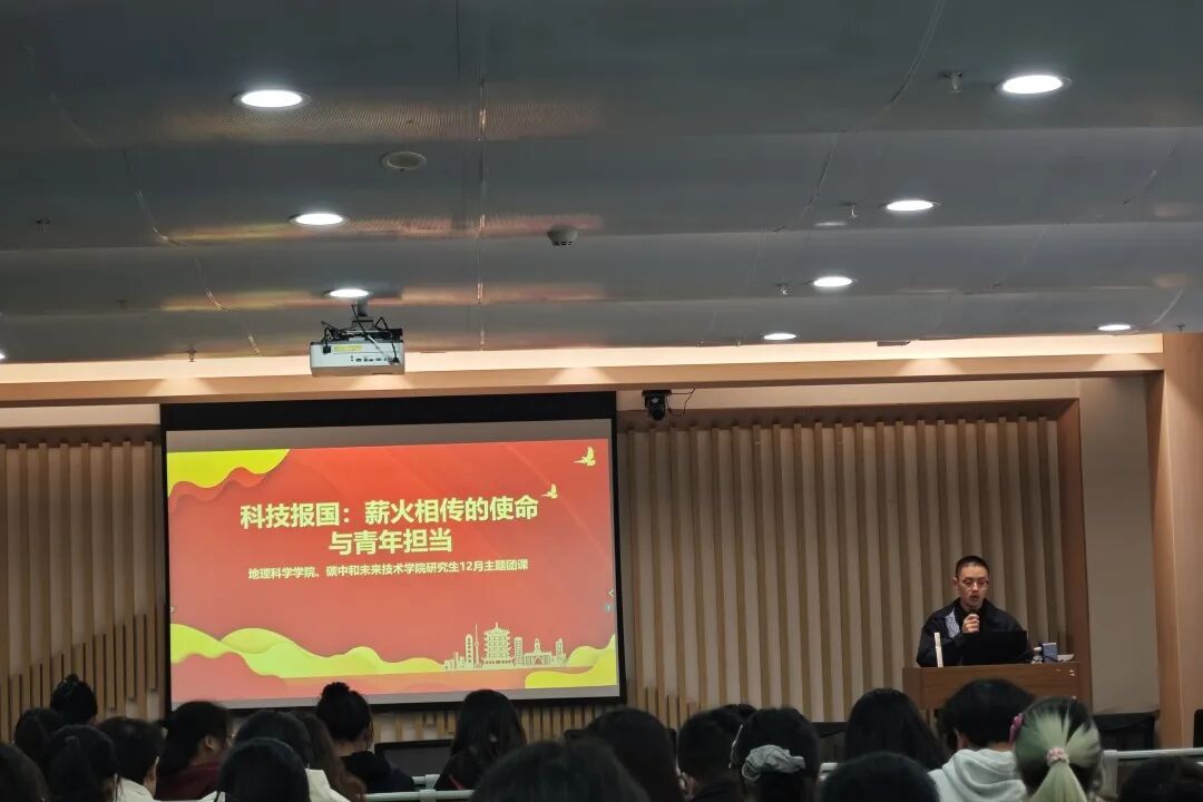 研究生2024级辅导员涂金益讲授《科技报国:薪火相传的使命与青年担当》主题团课,围绕“科技报国”主题,阐述个人理想与国家需求的紧密联结,梳理百年科学家精神谱系——从救国图存到引领创新,展现钱学森、袁隆平、南仁东等历代科学家的爱国奉献;通过中美科技竞争数据与我国关键技术发展态势,揭示当前科技博弈的现实图景,并聚焦青年科研团队在多领域的创新实践。团课引领青年一代应传承科学家精神,将论文写在祖国大地上,勇担科技报国使命。