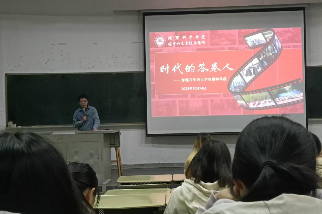 为加强青年学生思想政治引领,夯实基层团组织建设,近日,我院面向全体学生分批次开展了系列主题团课活动。主题团课紧密结合不同年级学生的成长阶段与实际需求,围绕理想信念教育、专业认同培养、生涯规划指导、社会责任担当等核心主题,引导广大地理学子坚定理想信念,明确奋斗目标。