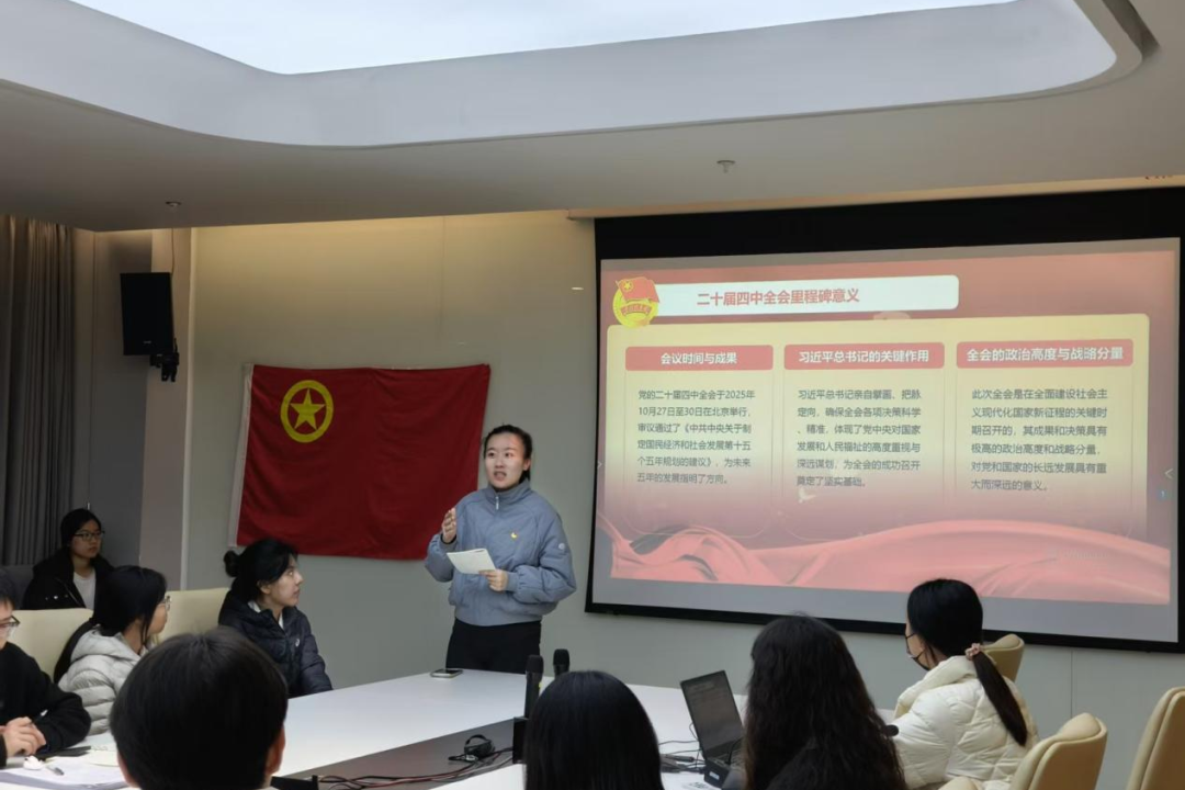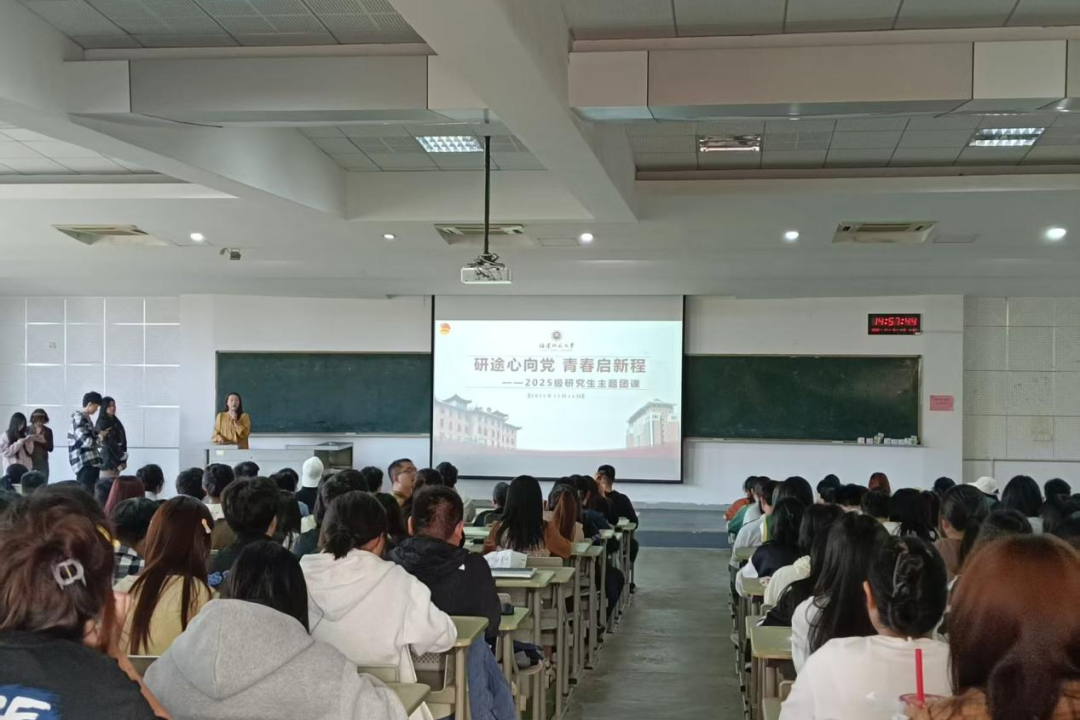 研究生2025级辅导员应思苒围绕“研途心向党,青春启新程”展开主题团课,引领青年在坚定信仰中校准研途航向——深化理论武装、传承红色基因、明确时代要求;在潜心学术中锤炼强国之能——夯实专业根基、勇于创新探索、恪守学术规范;在全面成长中践行初心使命——积极参与集体建设、投身社会实践与志愿服务,激励每位同学将个人理想融入党和人民的事业,以青春奋斗书写无愧于时代、无愧于人民的人生华章。