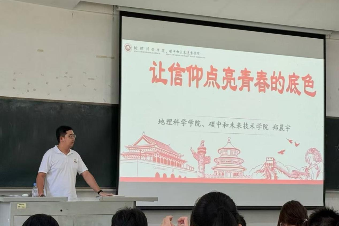 本科生2023级辅导员郑晨宇以《让信仰点亮青春的底色》为主题,从“坚定理想信念、筑牢精神根基”“深耕专业领域、践行知行合一”“投身实践服务、彰显青春力量”三个维度展开,结合当前学业发展与未来人生选择,通过解读榜样事迹、分析发展路径,激励同学们在理论学习中涵养家国情怀,在专业探索中明确奋斗方向,在社会实践中砥砺初心使命,将青春融入时代征程,用扎实的脚步书写无愧于信仰的人生篇章。