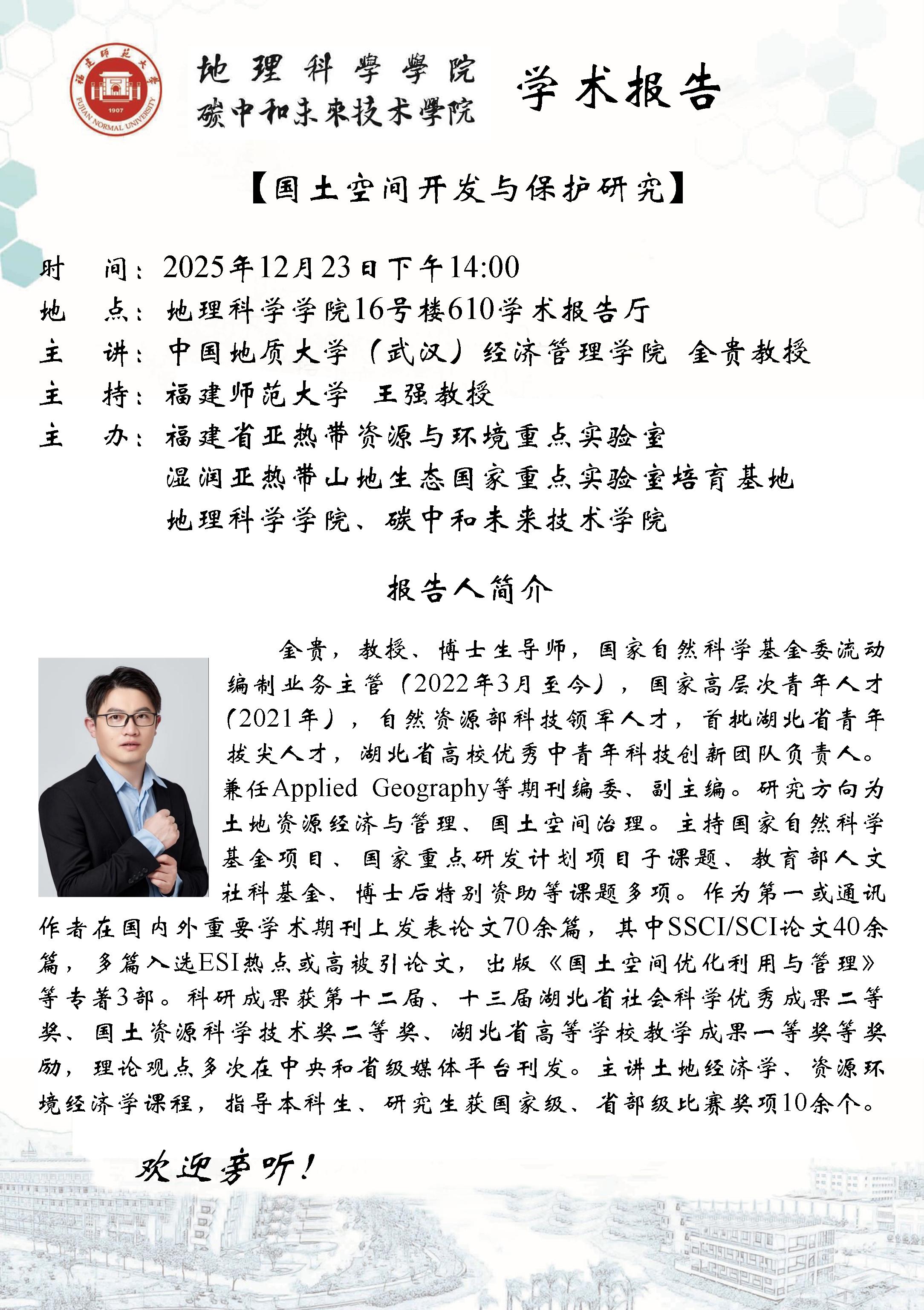 【2025年12月23日下午14:00】“国土空间开发与保护研究”学术报告