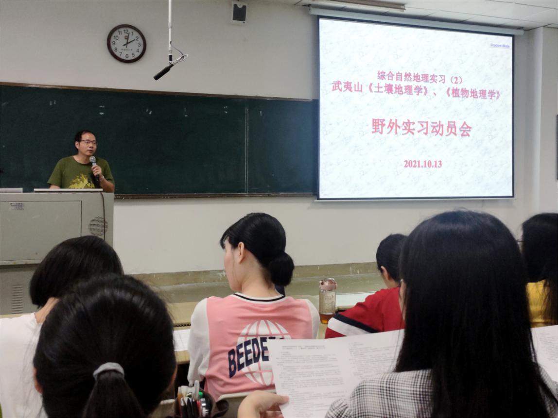 2021年10月13日下午,我院2019级地理科学(师范)专业与自然地理与资源环境专业于笃行1-114开展武夷山野外实习动员会。副书记周志强、副院长陈松林,实习带队老师陈志强、陈秀玲、刘强,2019级辅导员邹秀琦以及2019级地理科学(师范)专业与自然地理与资源环境专业的全体学生参与了本次动员会,会议由刘强主持。