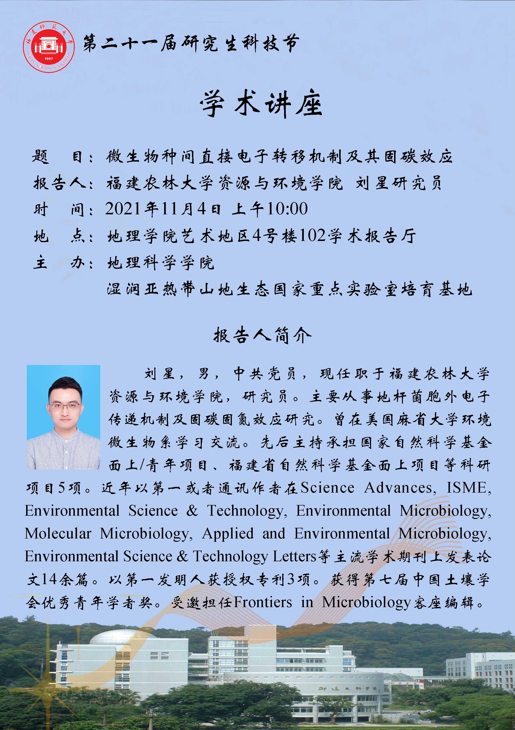 2021年11月4日“微生物种间直接电子转移机制及其固碳效应”学术讲座