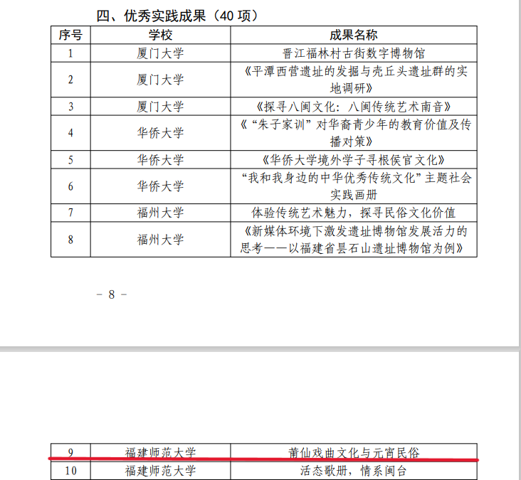 近日,中共福建省委教育工委发布《关于2022—2023学年寒假“我和我身边的中华优秀传统文化”主题社会实践活动评选结果的通知》,我院“莆仙戏曲文化与元宵民俗”项目荣膺福建省委教育工委2022-2023学年寒假“我和我身边的中华优秀传统文化”主题社会实践活动优秀实践成果。