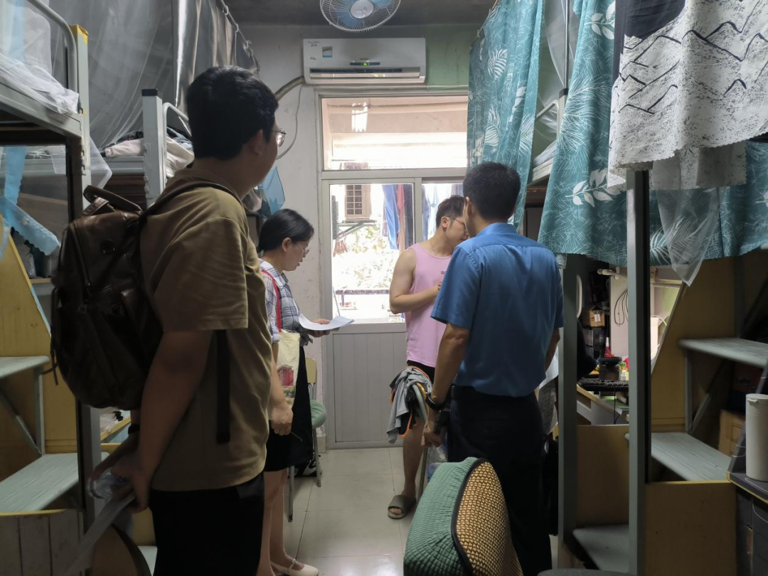 林翠容书记一行实地走访了学生宿舍、实验室、考研自习室等,现场查看了学院各场所防台防汛准备情况,排查存在的安全隐患,并与学院值班老师、学生公寓宿管员、暑期留校学生等进行深入交流。