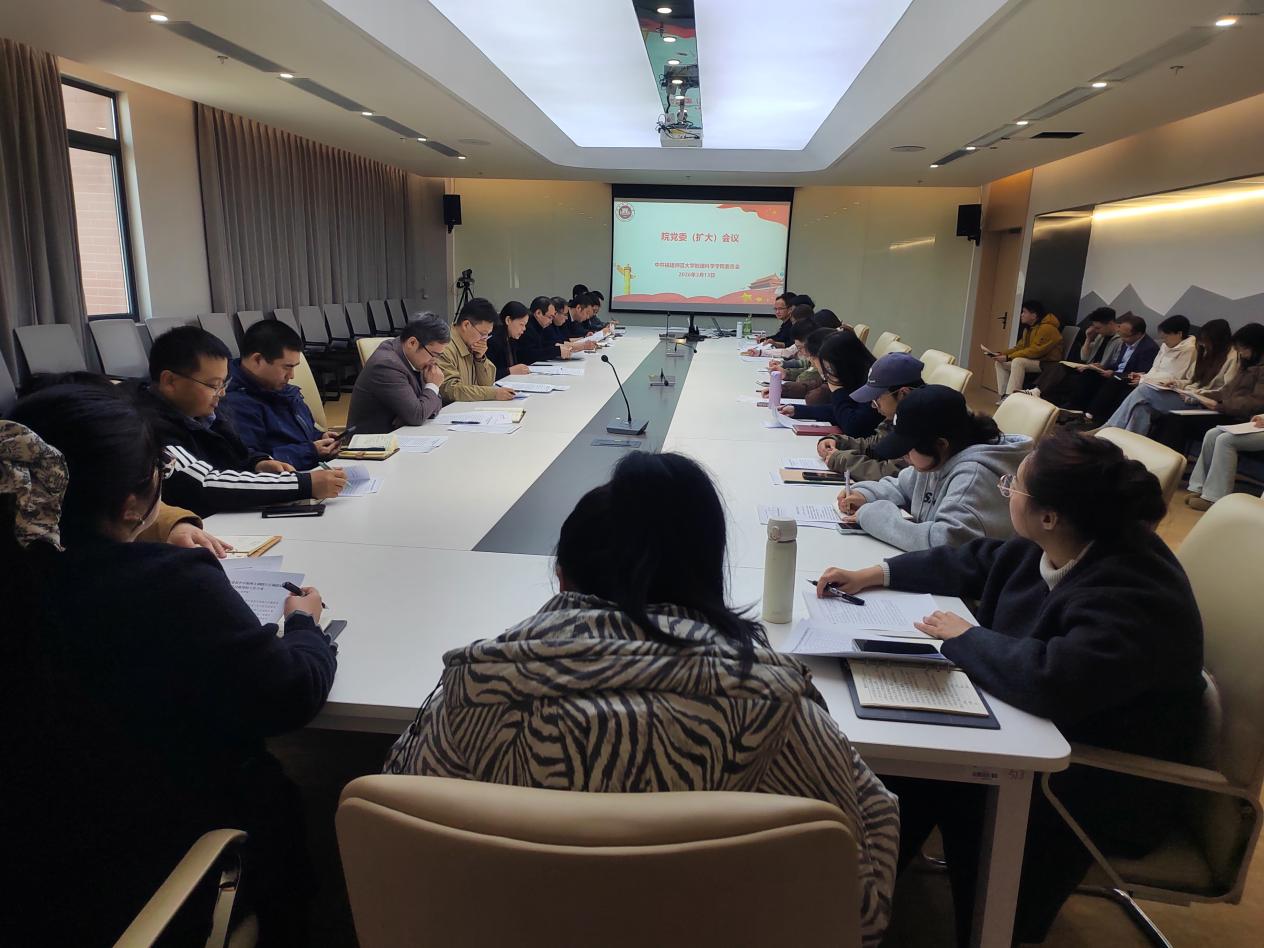 3月13日下午,学院召开党委(扩大)会议。会议认真学习贯彻习近平总书记关于树立和践行正确政绩观的重要讲话和重要指示精神,传达学习落实中央党的建设工作领导小组会议精神、《中共中央办公厅关于在全党开展树立和践行正确政绩观学习教育的通知》、省委常委会会议暨省委党的建设工作领导小组会议精神和学校党的建设工作领导小组(扩大)会议精神,启动部署学院树立和践行正确政绩观学习教育。学院领导班子成员、各科室负责人、全体党支部书记、辅导员参加会议。