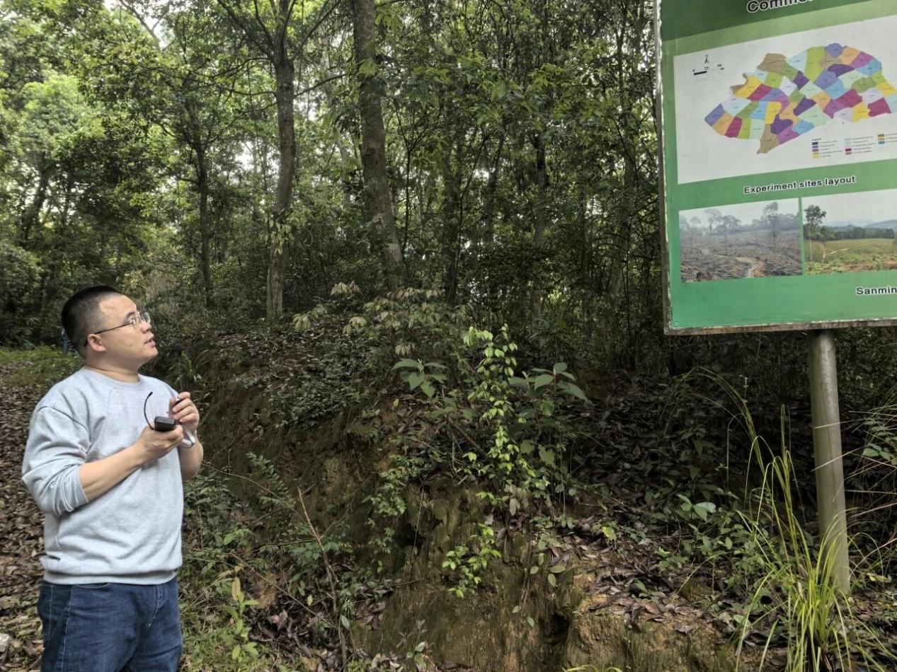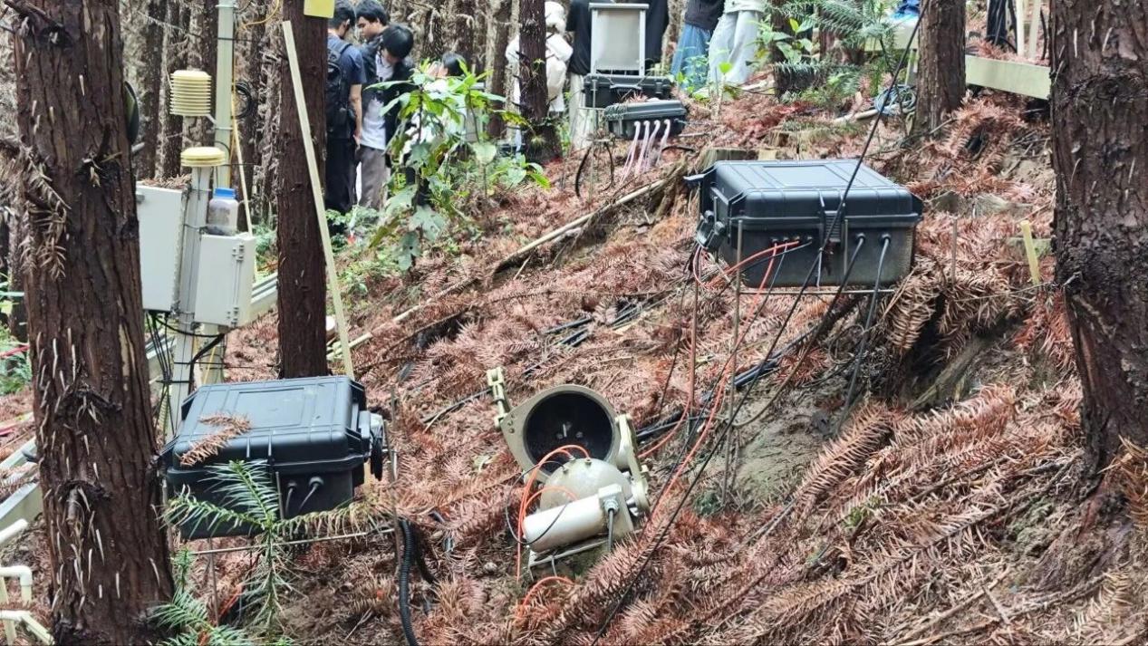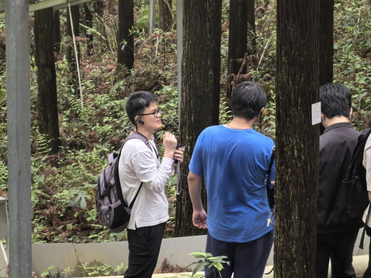 随后,在杉木幼林土壤增温实验区,陈仕东老师围绕增温实验平台展开讲解,介绍了增温实验设计,带领同学们实地观察土壤碳通量监测设备的运作规律,直观呈现了增温对生态系统碳源汇动态、物候及生产力的影响规律,让抽象的全球变化生态学理论变得可感可知。