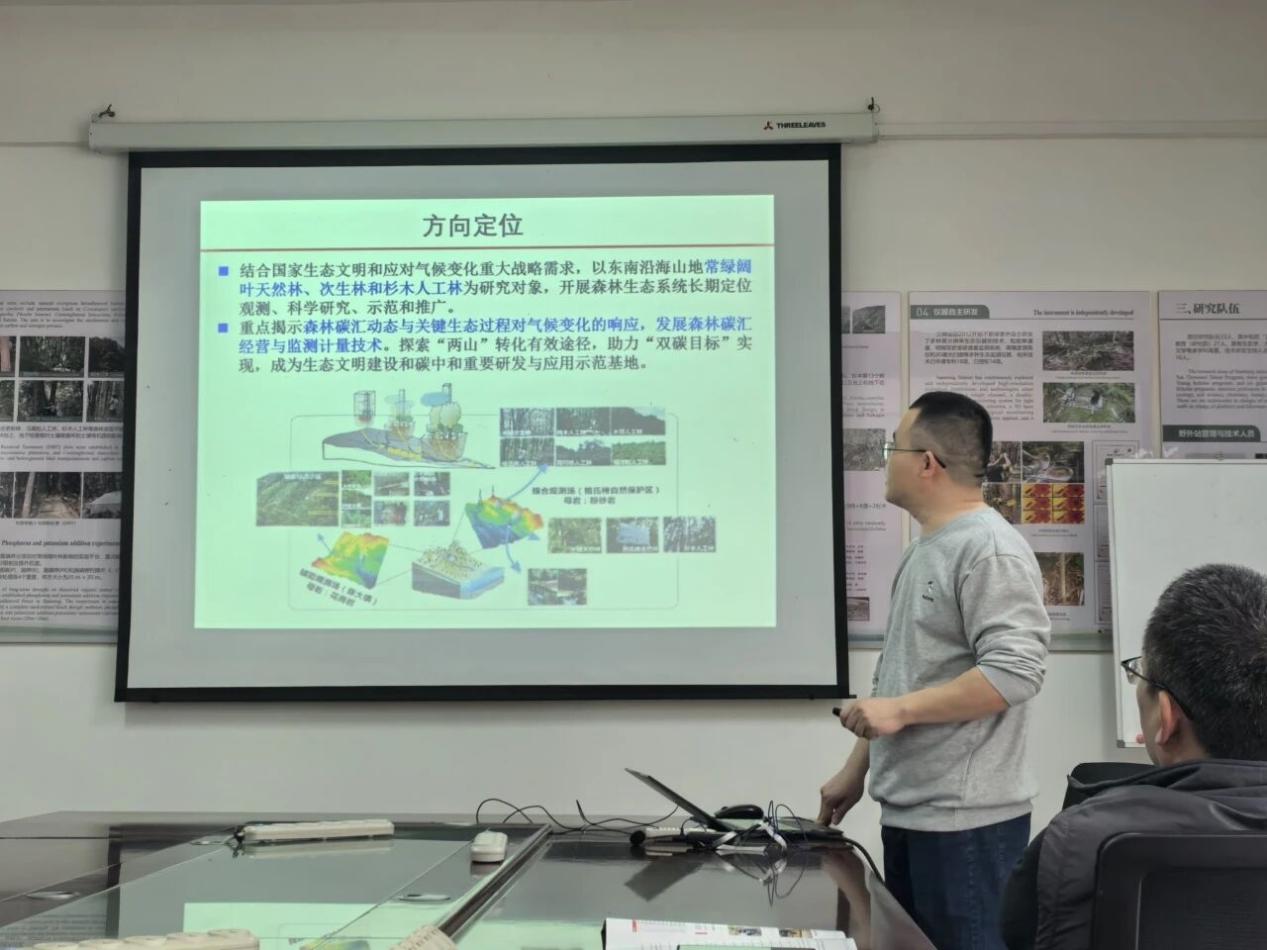 最后,熊德成老师带领学生们深入多树种同质园实验平台开展实地调研,并在研究站进行了系统的站点汇报,全面介绍了三明站的发展历程、核心观测平台、科研成果及在生态文明建设中的重要作用。实习期间,同学们还参观了气象站、土壤培养室、光合小塔等科研设施,系统学习了物候观测、土壤监测等野外科研方法,近距离接触格氏栲等外生菌根树种,了解其在森林生态系统中的重要功能。