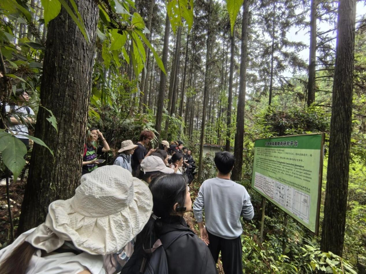 同学们到杉木林隔离降雨研究平台学习