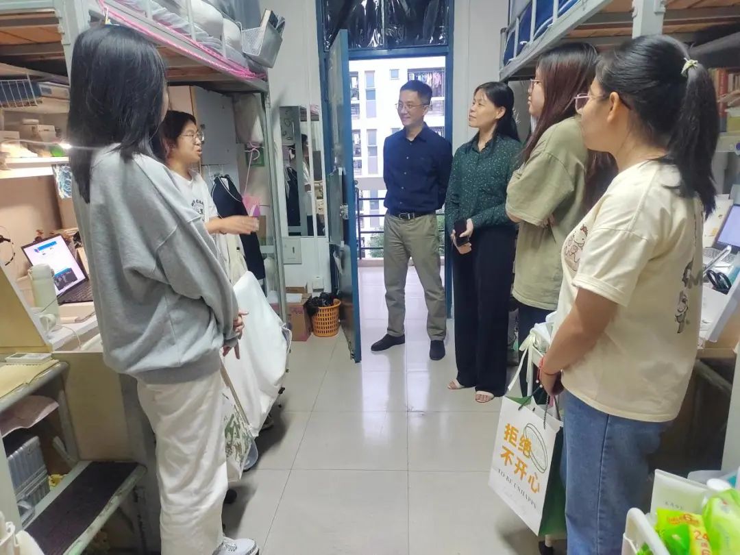 按照学校《关于做好2023-2024学年深入基层联系学生工作的通知》要求,结合我院领导班子成员联系学生班级、社团、宿舍整体安排,2023年10月26日下午,我院党委书记林翠容、党委副书记林伟以及部分辅导员深入学生宿舍,了解学生学习、生活、工作等情况。林翠容书记与所联系宿舍的4名本科2021级地理信息科学班同学进行亲切交流,认真聆听了同学们入学以来的学习感受和校园生活情况。在了解有学生作为年级主要学生干部的时候,林翠容书记勉励同学们要做好带头作用,在学习生活工作中做好表率,营造良好的班风、学风;要强化服务意识,学会在工作中锻炼自己,不断提高管理水平和工作能力,为年级同学做好服务;要注重团结协作,把年级建设成为一支有凝聚力、有创造力、有战斗力的队伍。