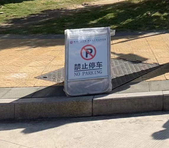 我院在学院楼下消防通道及学院门口等场所设置“禁止停车”温馨提示告示牌,提升规范停车督导成效,确保消防通道畅通无阻。