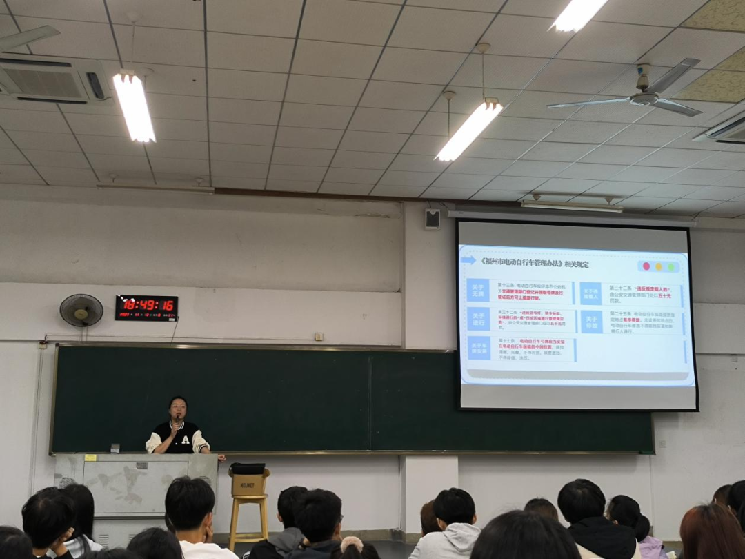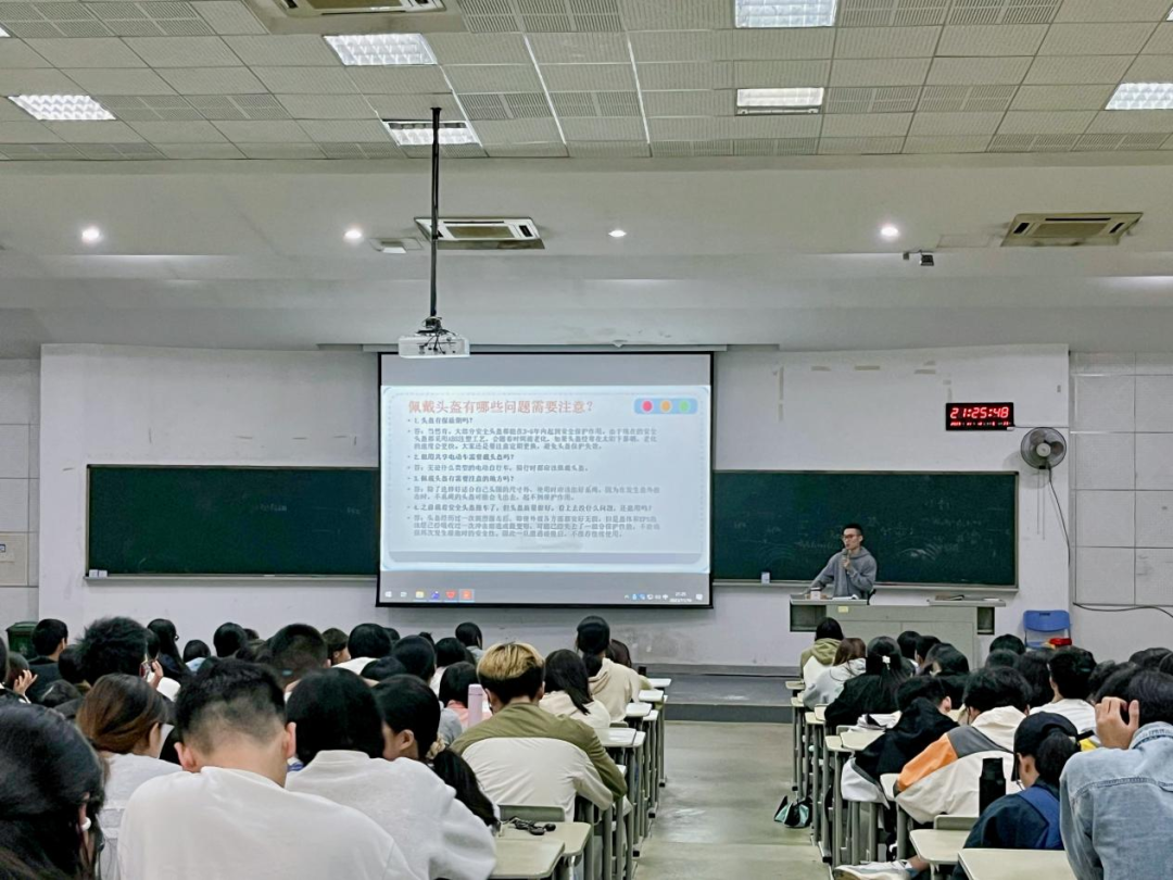 在专题教育上,各年级辅导员组织学生集体学习电动车管理相关规则制度,通过题为《骑行戴好头盔,安全一路相随》的主题学习向学生强调骑车佩戴安全头盔的重要性,提醒全体学生骑行电动车务必按照规定佩戴符合国家质量要求的头盔。此外,各年级辅导员通过交通事故警示案例分享、电动车安全视频学习等形式向全体学生强调校园文明出行注意事项,要求全体学生坚决杜绝酒驾醉驾、超速、逆行、单手骑车、加装遮阳棚(伞)等违法违规骑行现象。