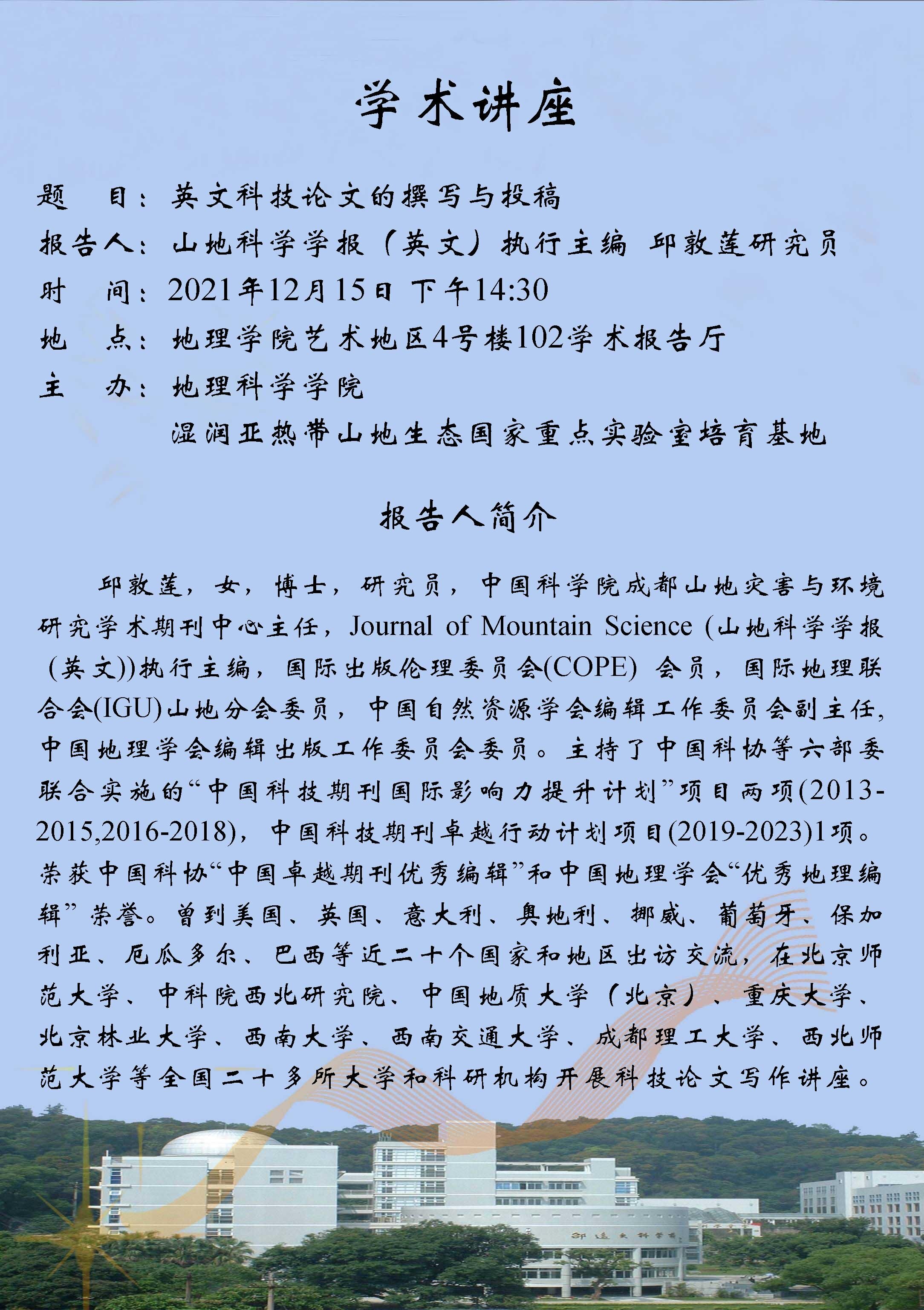 2021年12月15日“英文科技论文的撰写与投稿”学术讲座