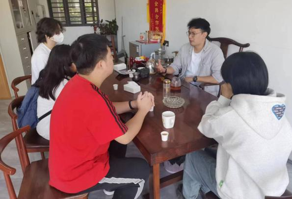 下午,实习团队来到洛阳镇万安村雕艺人才之家——李幼琴艺术工作室。石雕和影雕产业作为洛阳镇经济的重要支撑,不仅解决了当地居民的就业问题,还向国内外供销了大量精美作品。李大师从惠安石雕产业现状、历程和发展困境,详细介绍了惠安石雕产业的发展演变。在科学技术的推动下,石雕和影雕产业在雕刻工具上有所改变,但始终坚持人工雕刻,石雕产品品类多样,既有室外大型雕塑景观,又有居家小型摆件。之后,在李大师的指导下,同学们体验了影雕的制作流程。通过访谈还了解到,李大师不仅自己经营雕刻厂,还义务教授中小学生基础的石雕影雕技艺,希望将这些传统技艺继续传承下去,缓解目前雕艺传承困境,充分体现了洛阳镇企业家的社会责任感与使命感。