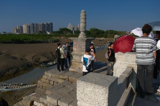 接下来,实习团队踏上了我国现存年代最早的跨海梁式大石桥——洛阳桥。实习团队参观了洛阳桥两岸特有的滩涂和红树林景观,学习了洛阳桥独特的筏型基础桥基结构的特点和作用,并从“洛阳桥”的命名了解到中原至此地的移民历史演进,证实了人文景观在研究人地关系中的重要作用。